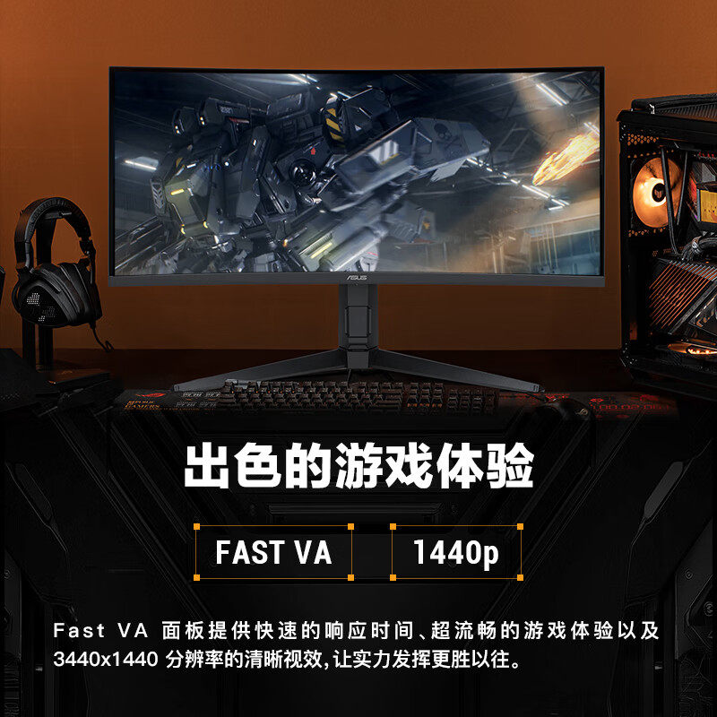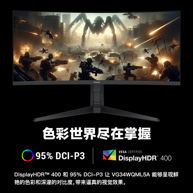 ASUS华硕34英寸带鱼屏曲面显示器250Hz准4K电脑2K屏幕VG34WQML5A