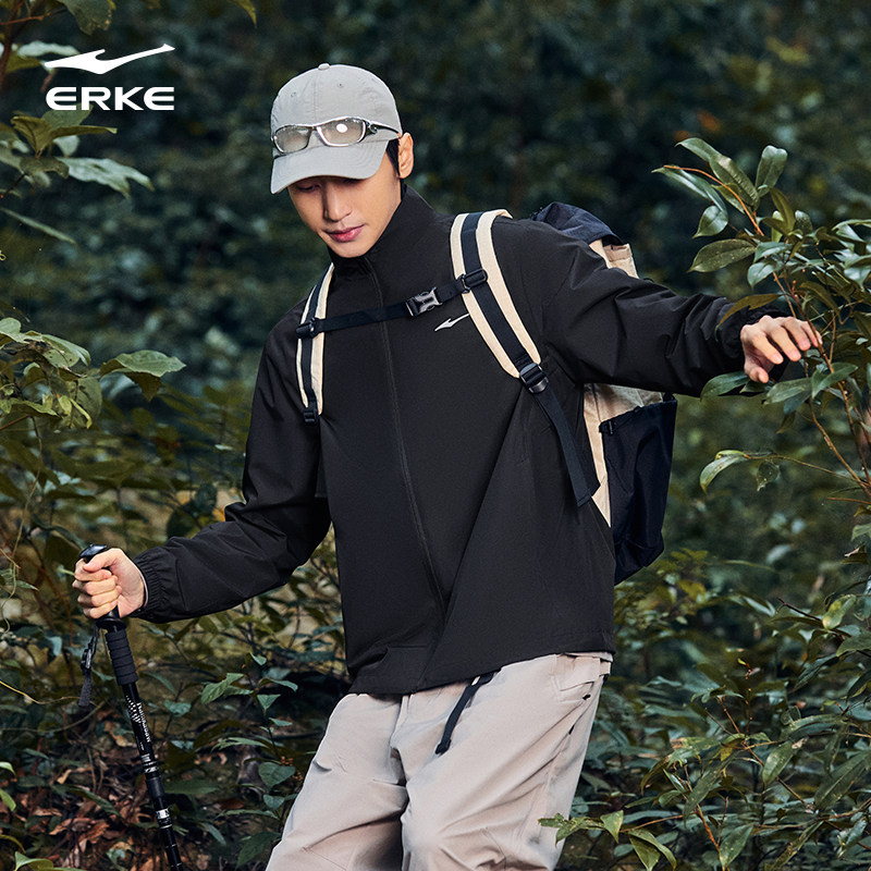 鸿星尔克外套男款2026春季新款男士户外运动三防立领夹克风衣男装