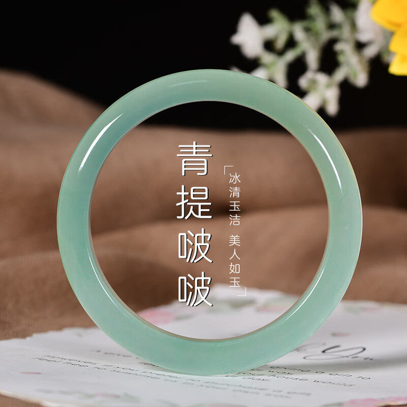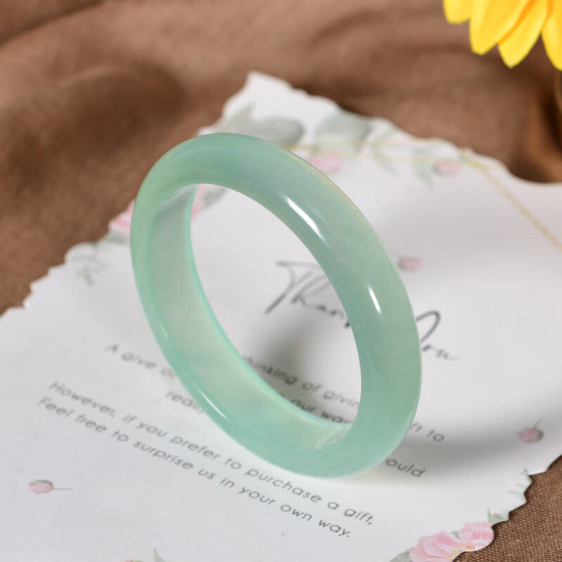 正品玉手镯翡翠色浅绿真玉石镯子少女学生清新国风玉镯湖水绿证书