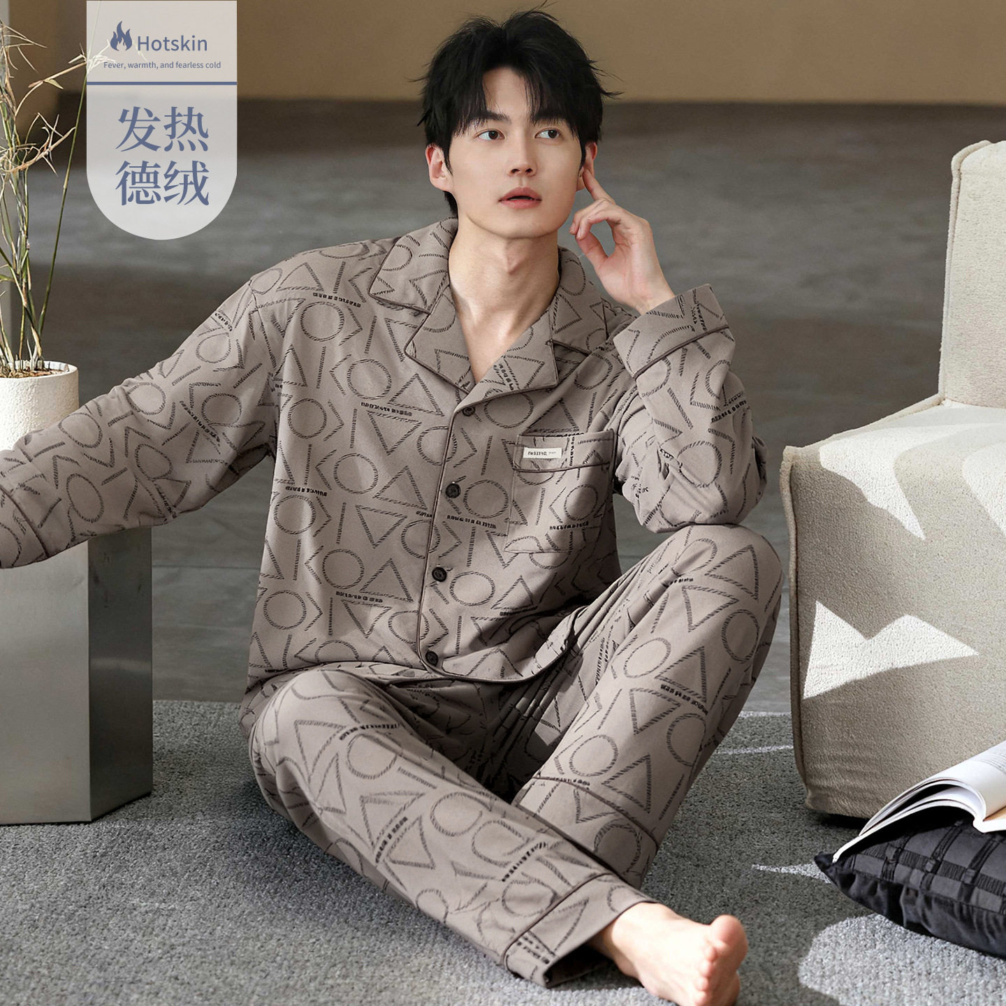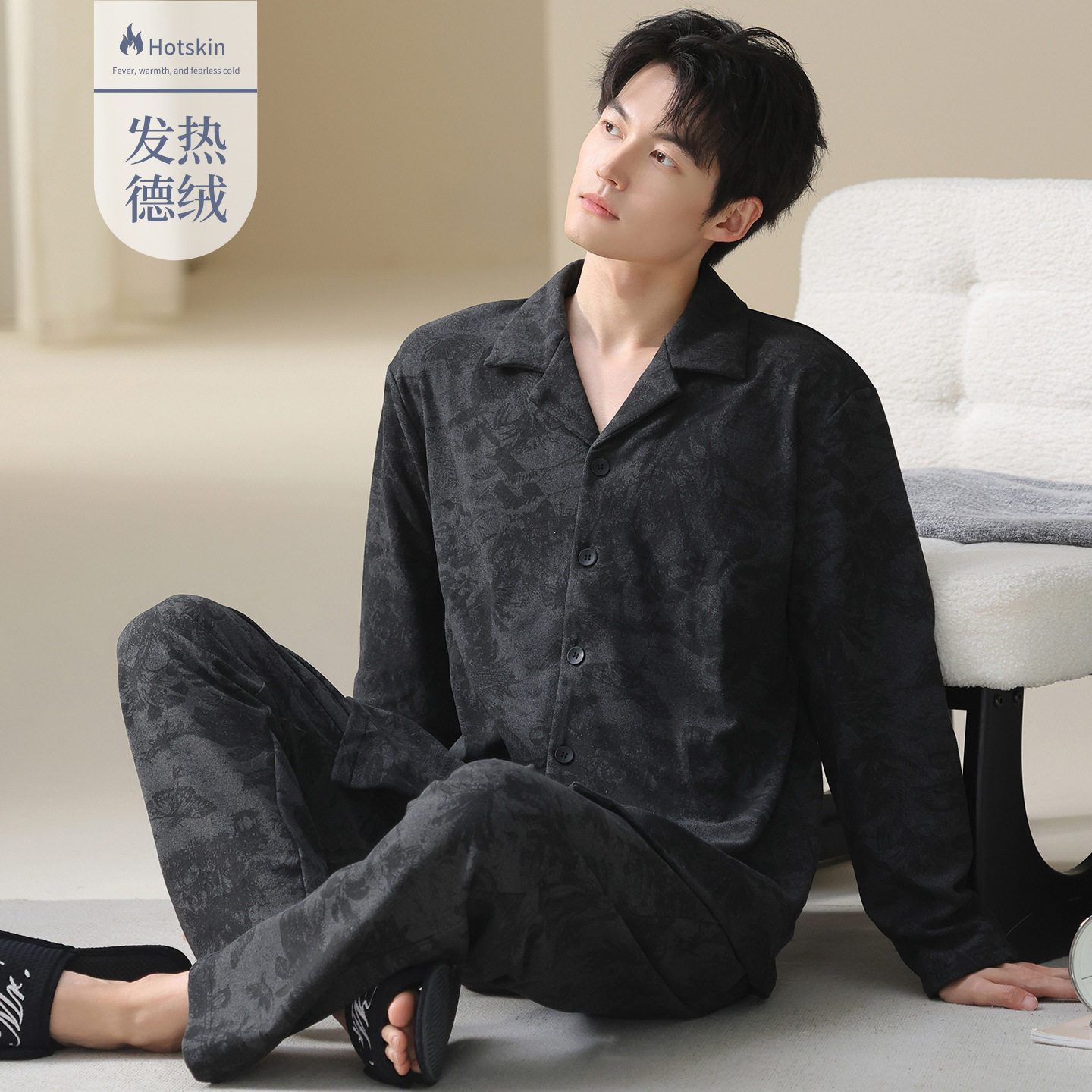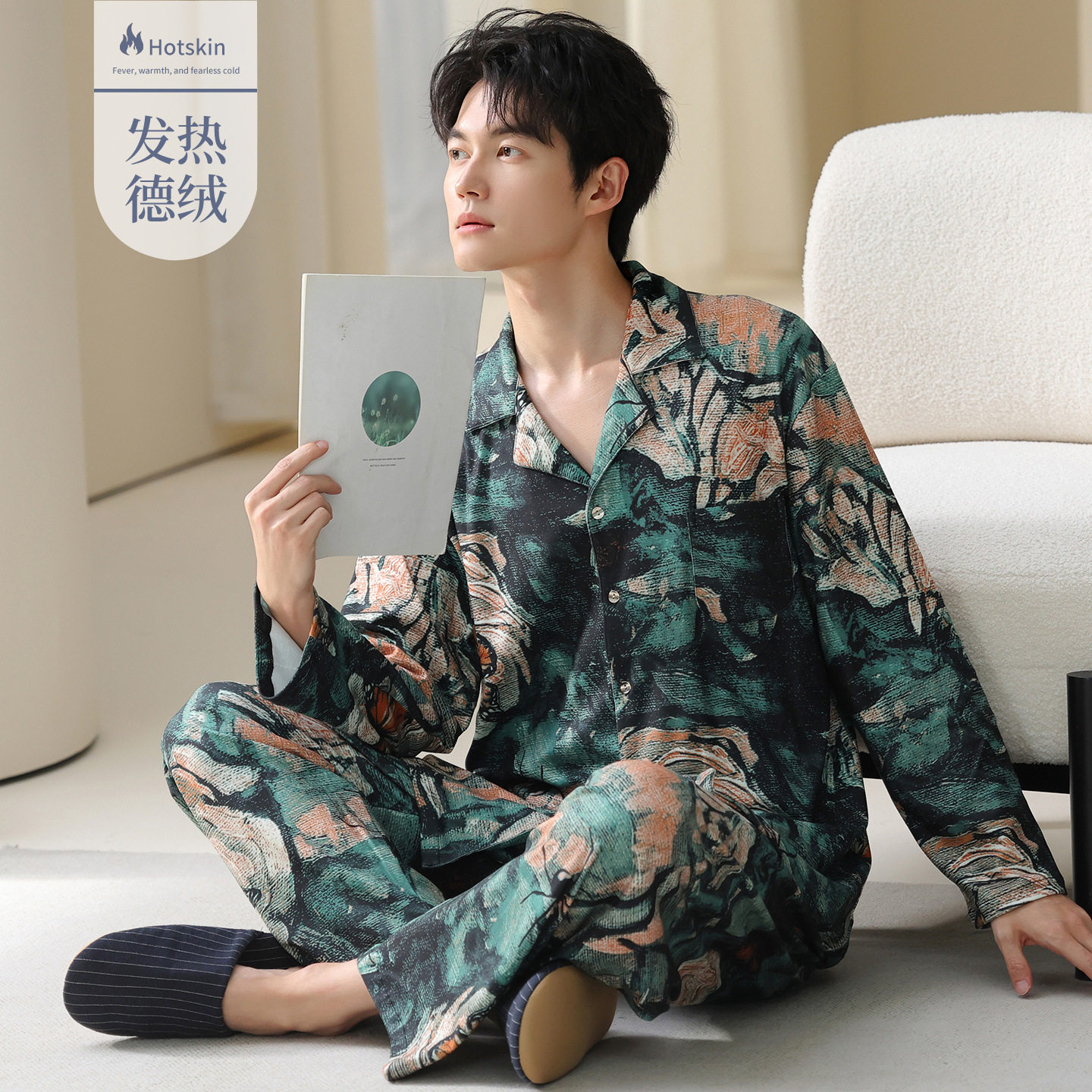 德绒睡衣男款秋冬季2025新款男士珊瑚绒磨毛加绒家居服套装居家