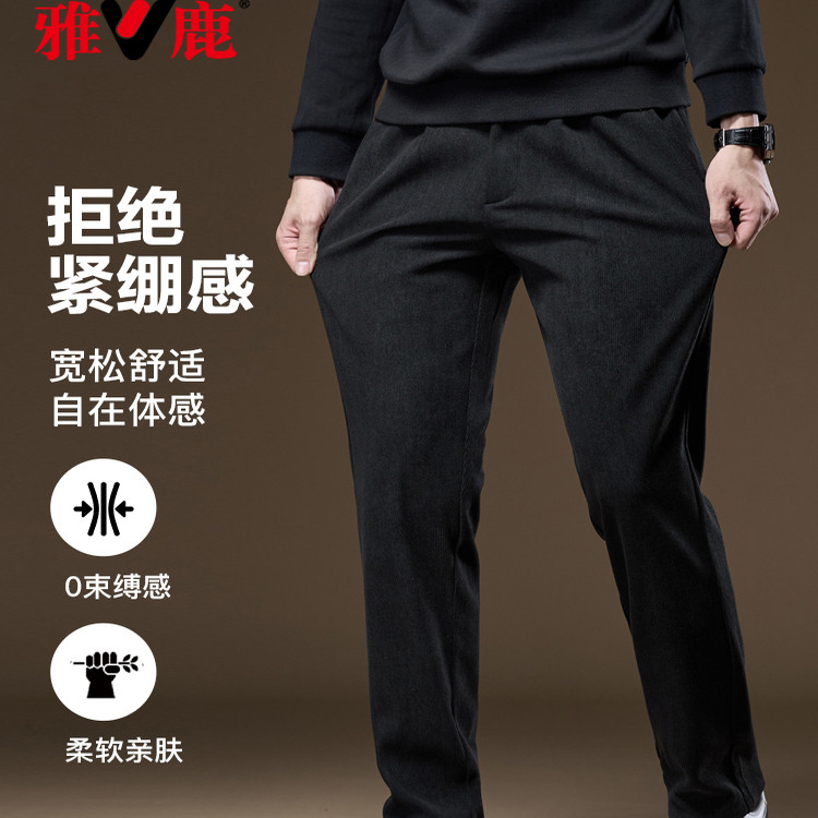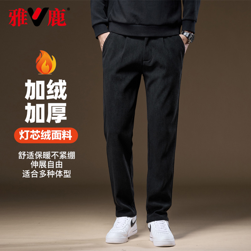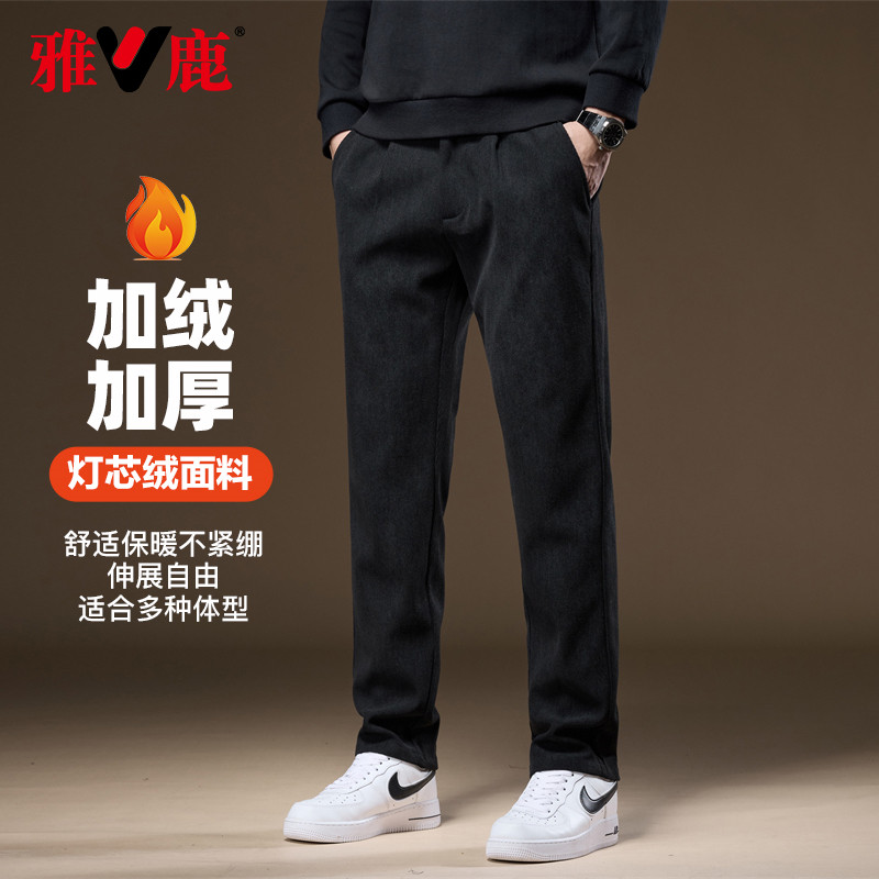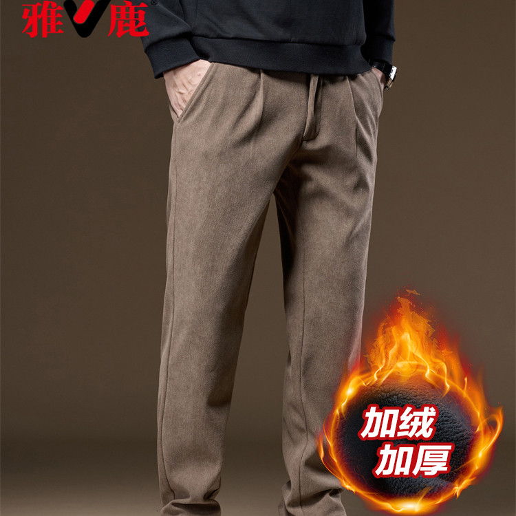 雅鹿男装加厚加绒休闲裤中青年秋冬季灯芯绒裤子商务休闲保暖长裤