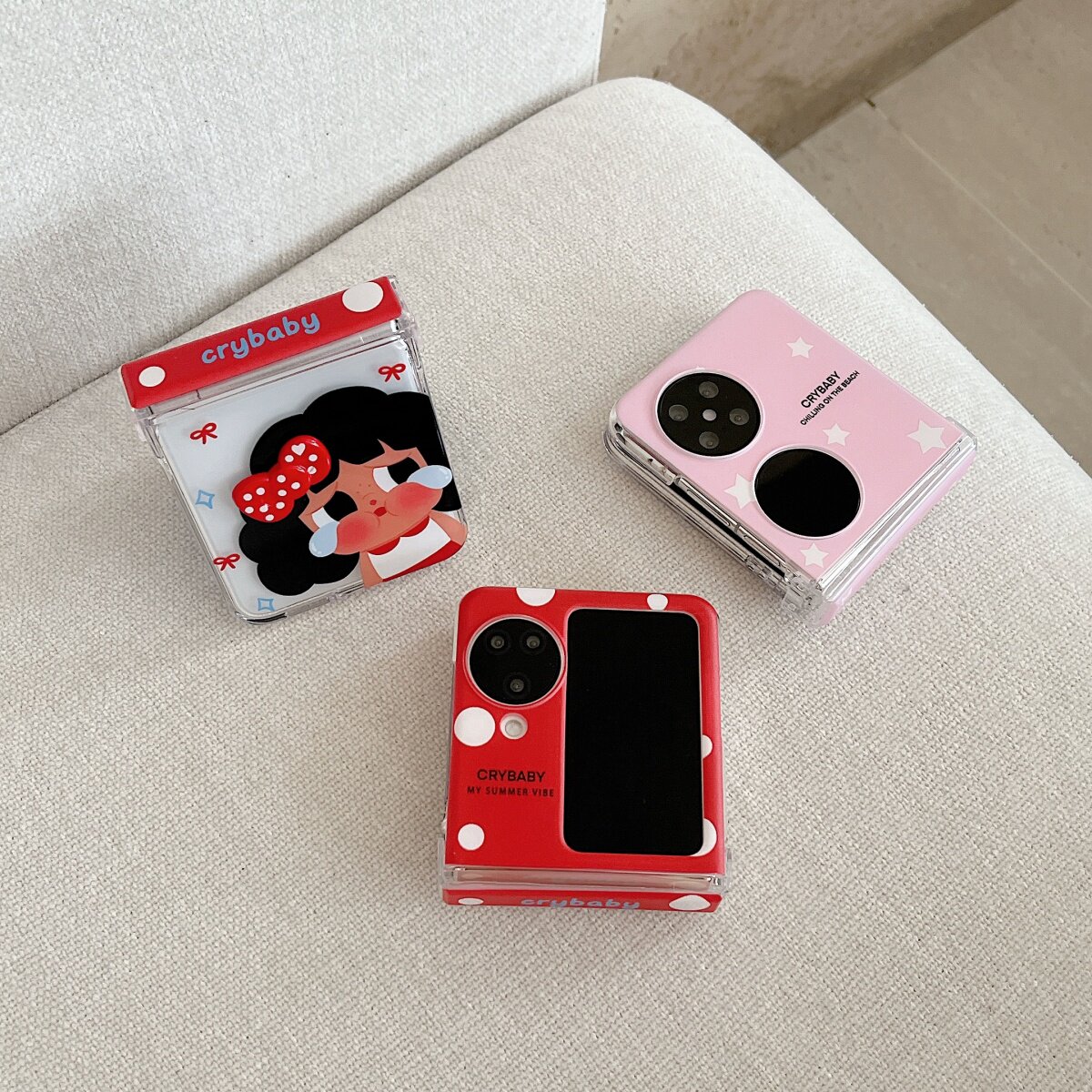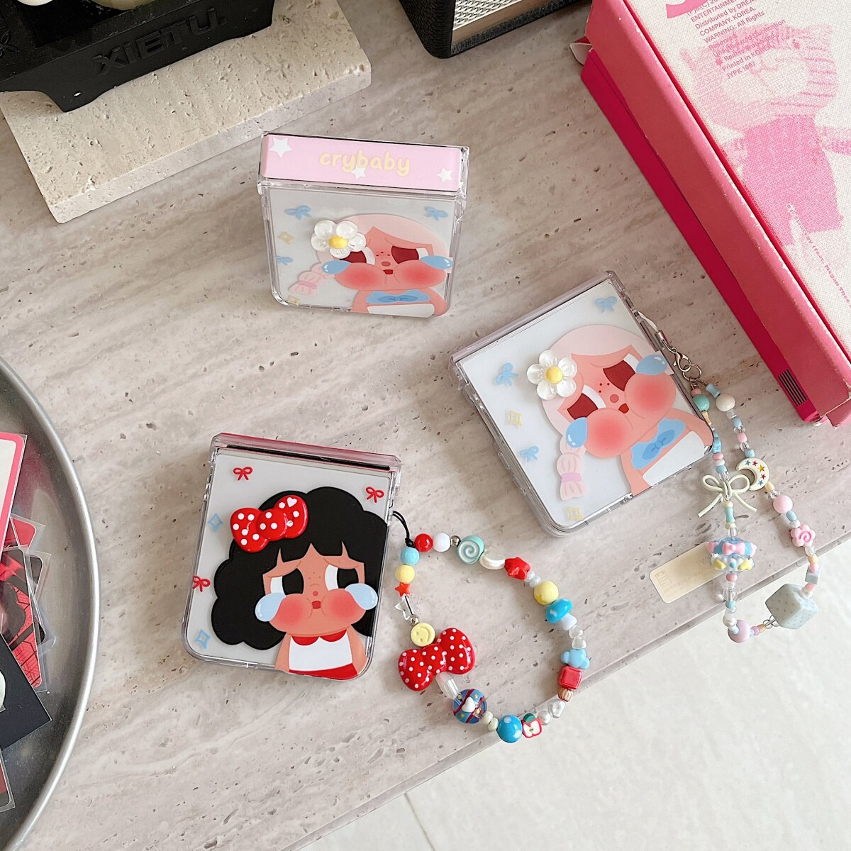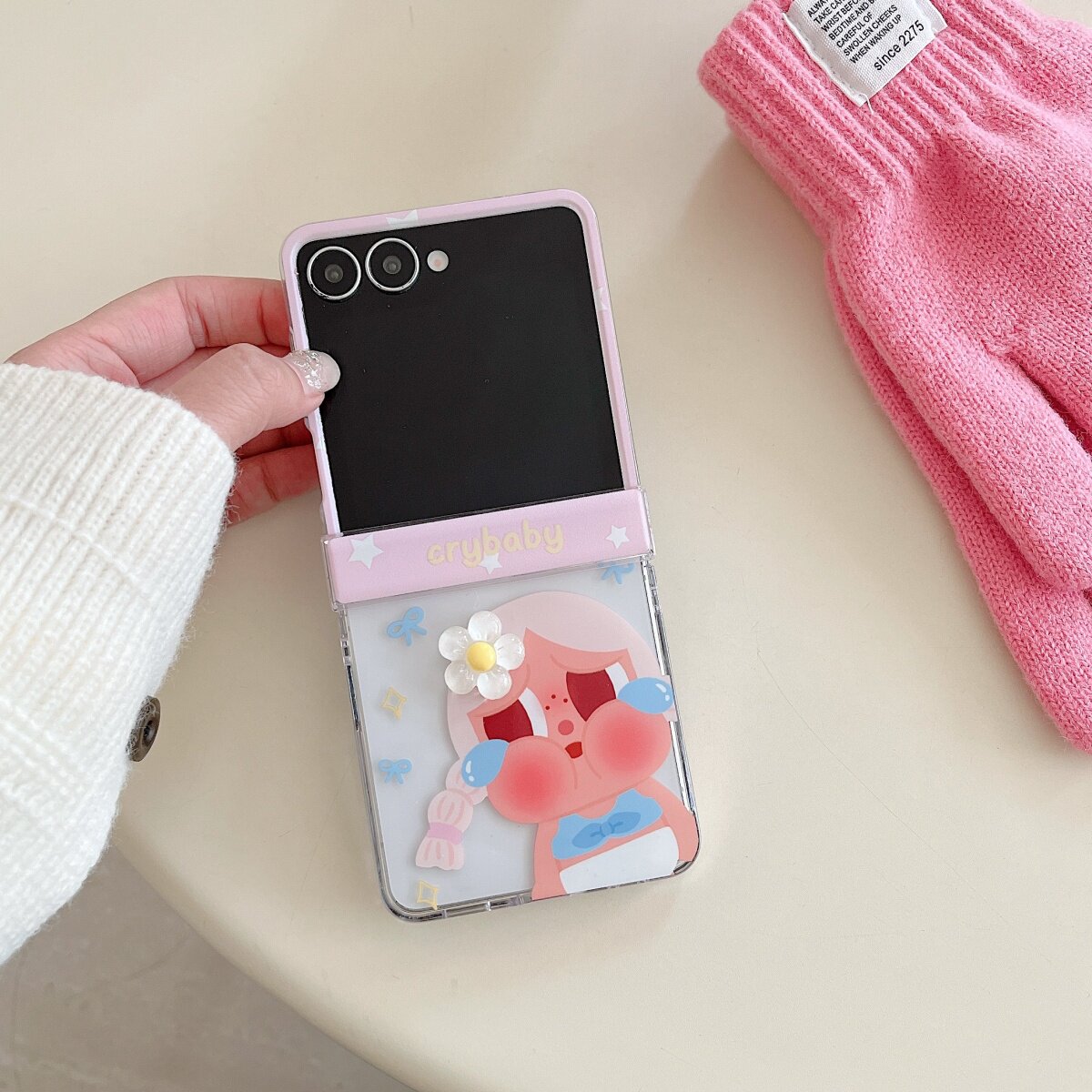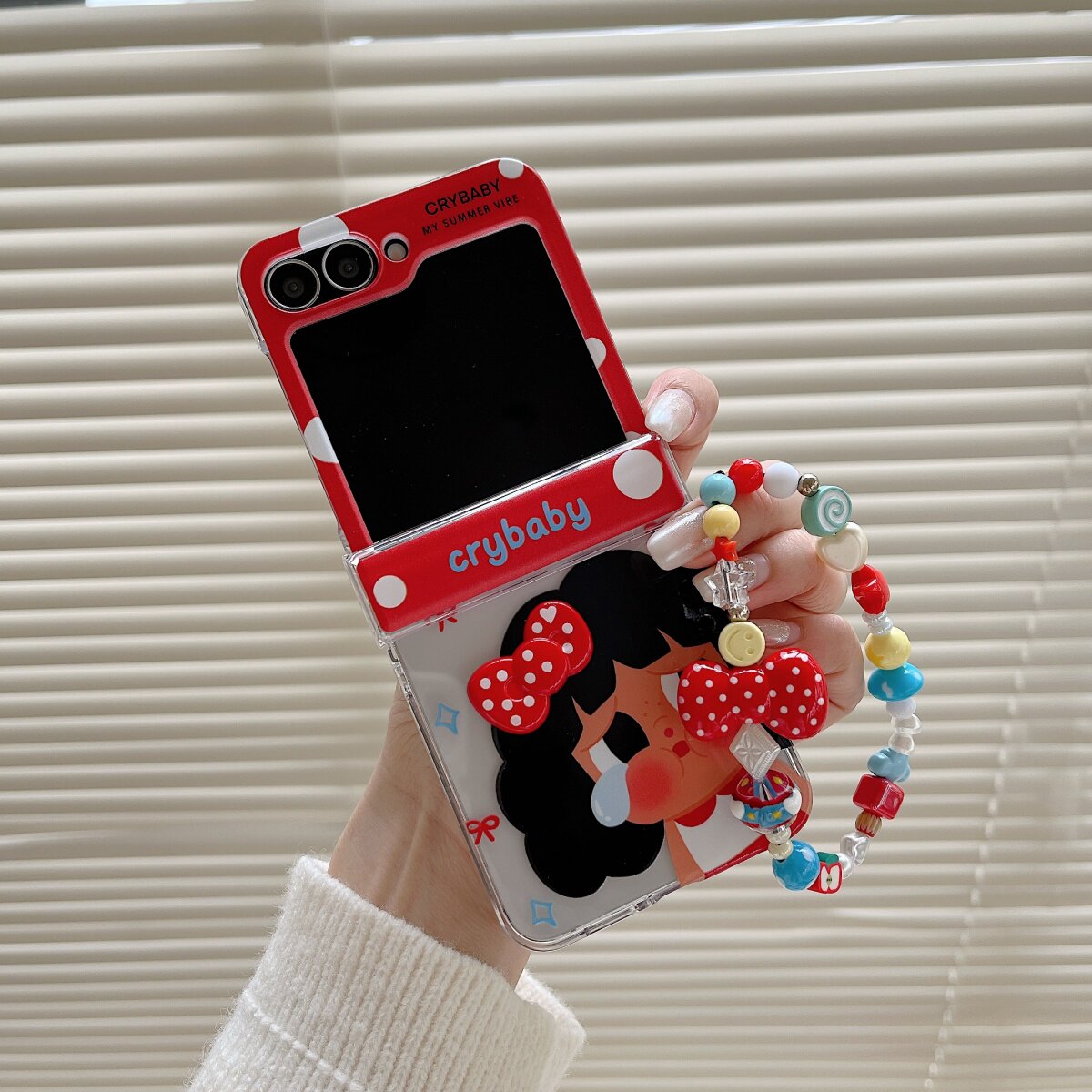 可爱蝴蝶结大脸卷发哭娃适用Galaxy Z Flip7/6/5/4手机壳保护套w24flip折叠屏荣耀MagicVFlip2全包护中轴防摔