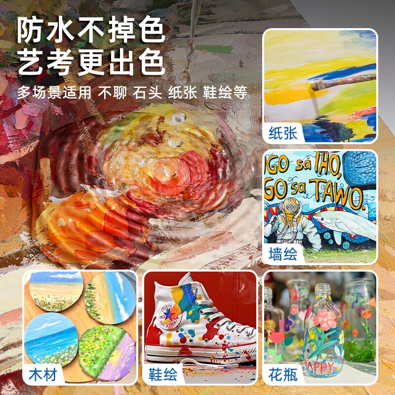 马利丙烯颜料套装油画颜料美术生专用42色75ml防水防晒不掉色24色丙烯画工具套装无甲醛炳稀墙绘肌理画材料