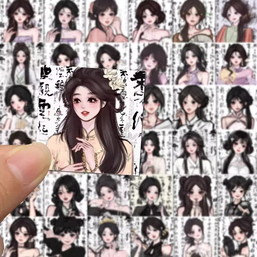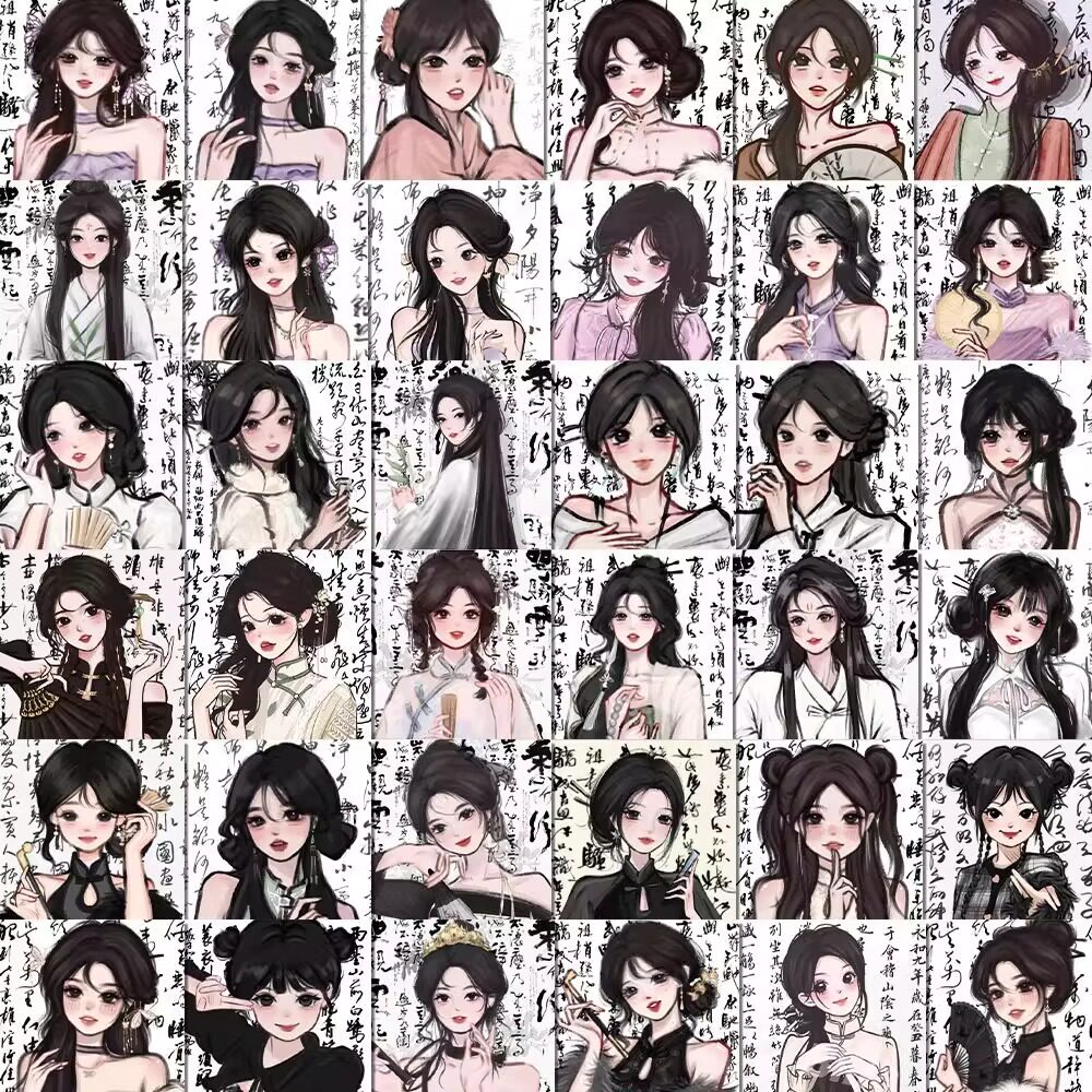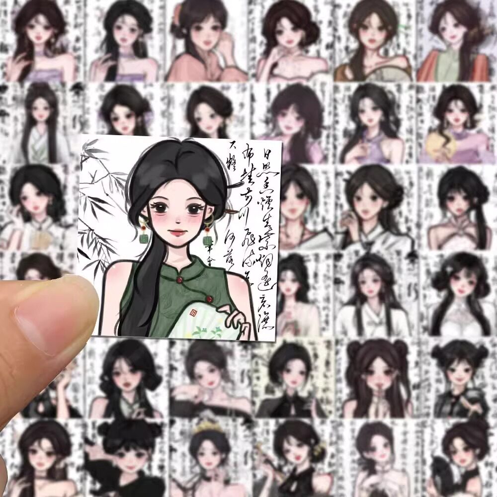 62张may新中式贴纸国潮笔墨画文字高颜值少女装饰防水贴画行李箱