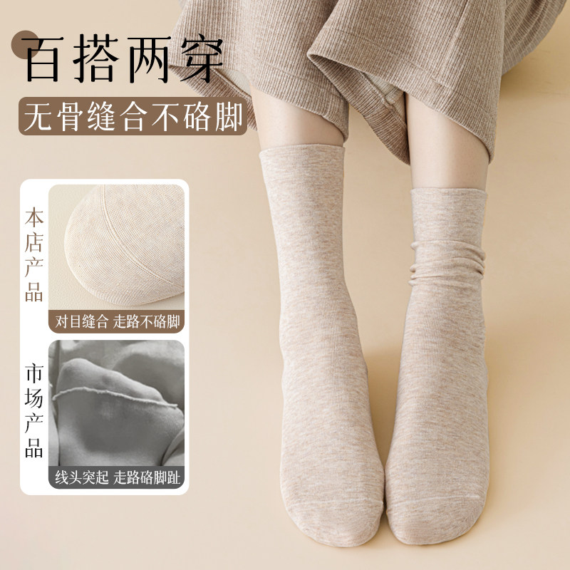 袜子女款中筒袜纯棉防臭女士无骨产后月子袜长筒秋冬全棉堆堆长袜
