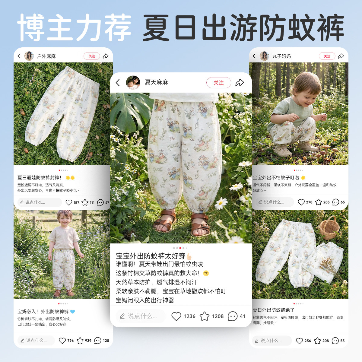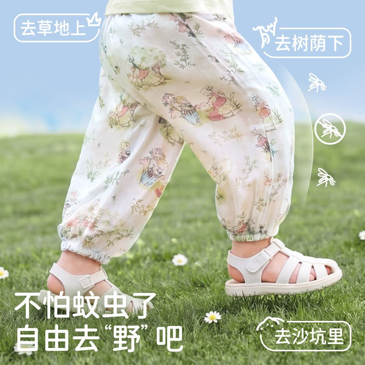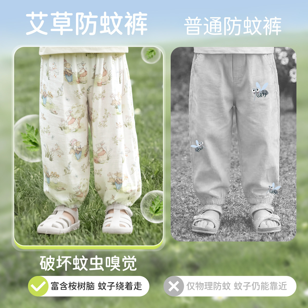 【艾草防蚊】夏季宝宝防蚊裤2026夏季薄款儿童灯笼裤长裤清凉透气
