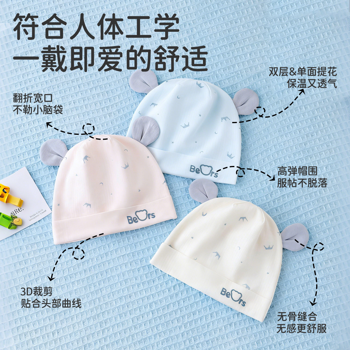 十月结晶粒粒阳光婴儿帽子a类0到3个月新生小月龄宝宝护囟门胎帽