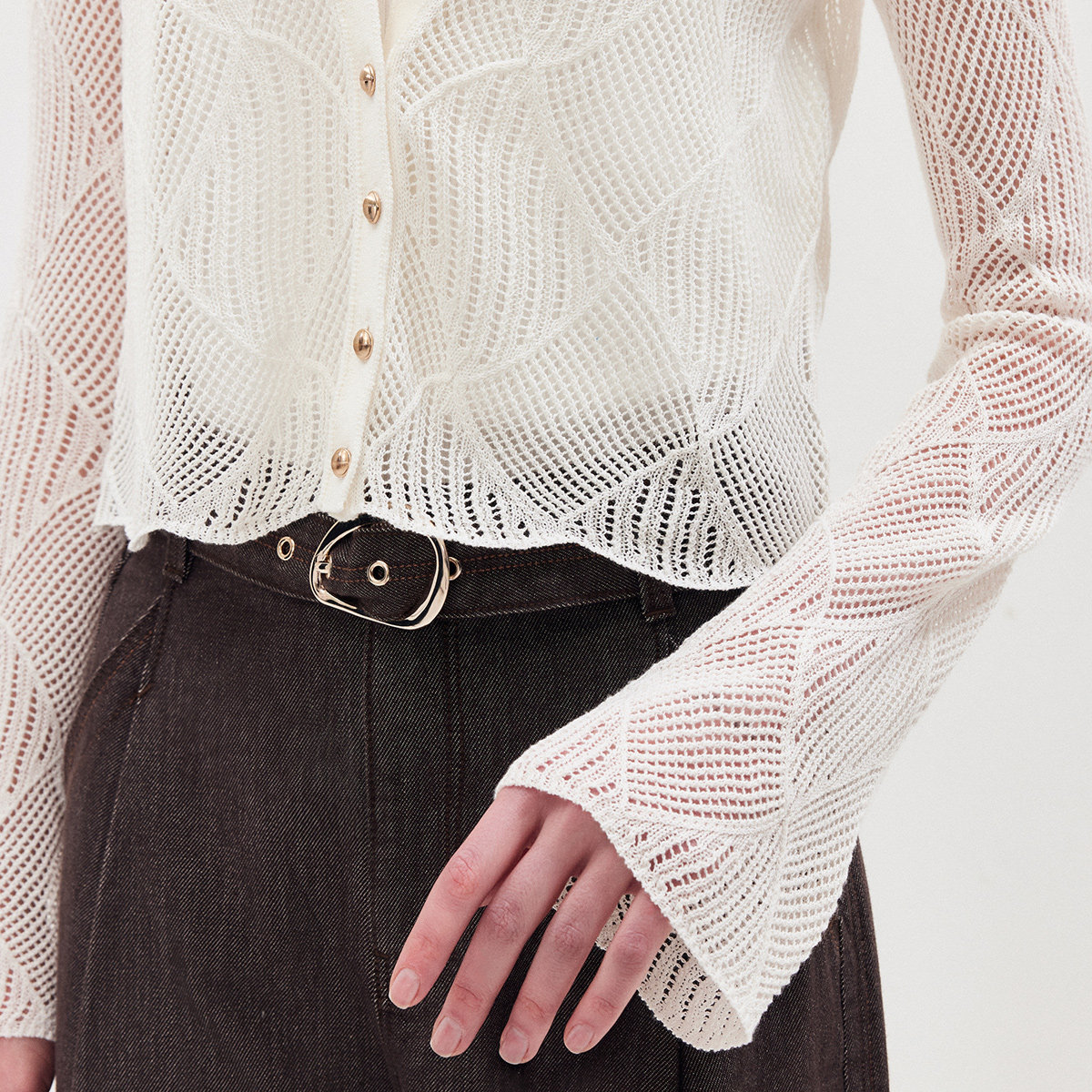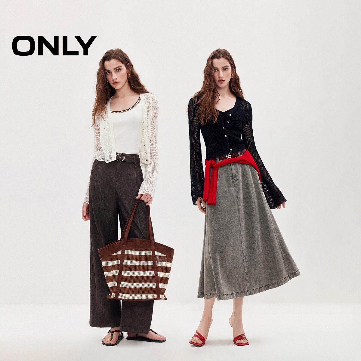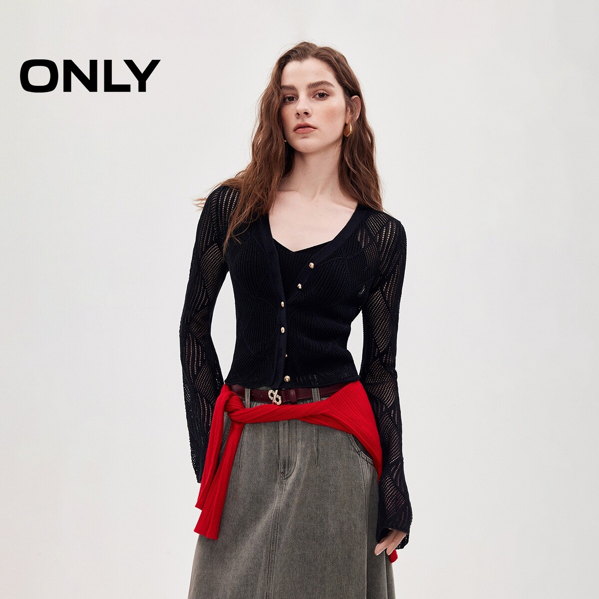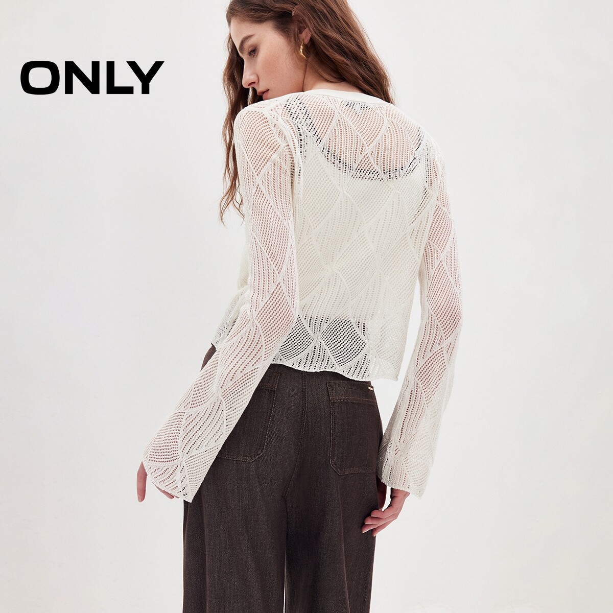 ONLY2026夏季新款清凉肌理感镂空微透上衣金丝纽扣开衫针织衫女