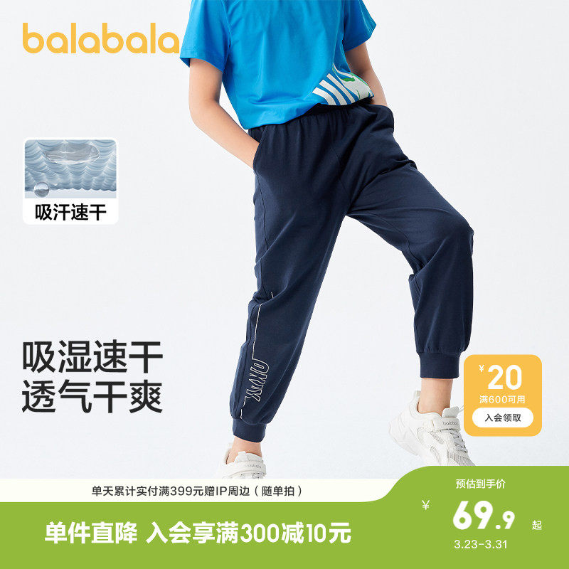 巴拉巴拉男童裤子儿童夏装新款女童中大童透气速干运动裤休闲长裤
