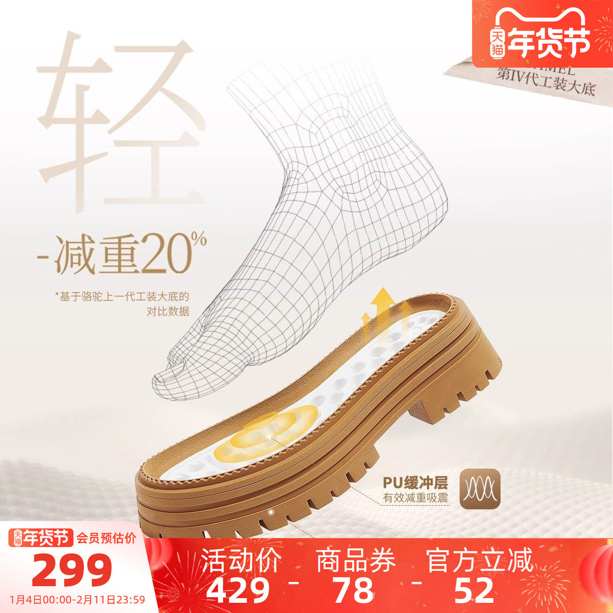 骆驼马丁靴女2025秋季新款厚底户外徒步登山鞋工装短靴马丁靴女鞋