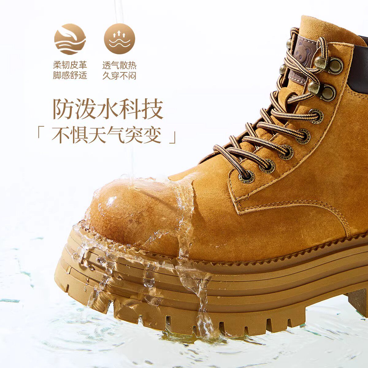 DREAMBOX钧博水洗马皮高帮工装鞋2025秋冬新款防滑厚底增高马丁靴