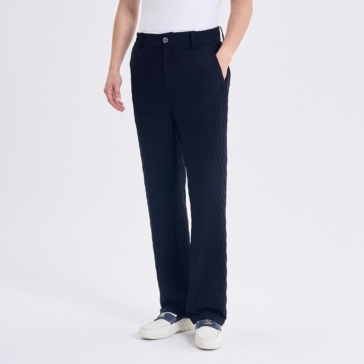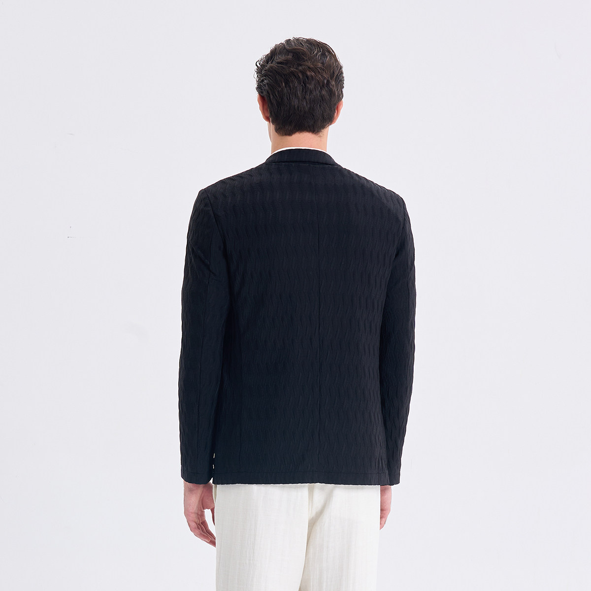 RARE威雅男装2026夏季新款几何提花黑色休闲单西直筒卫裤西服套装