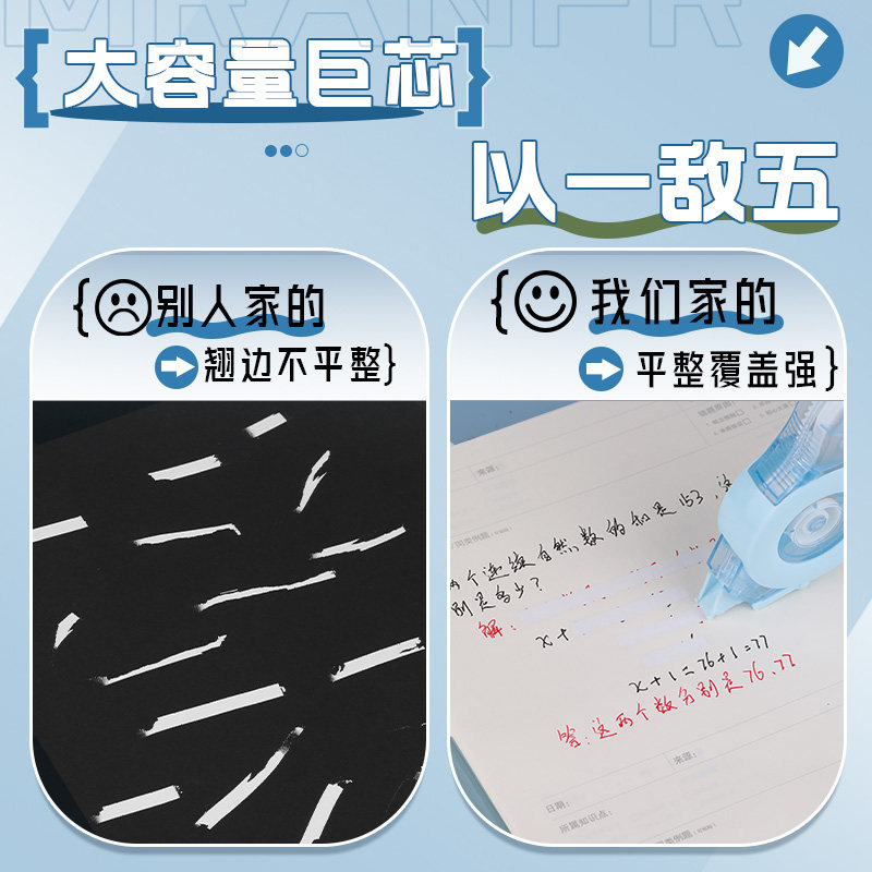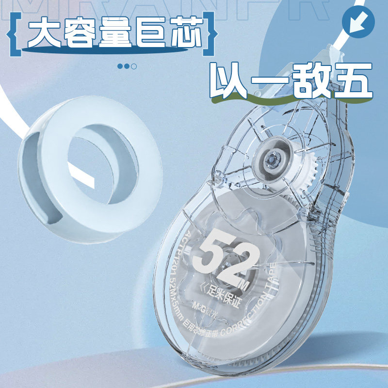晨光修正带初中生小学生专用大容量耐摔顺滑修正带ins高颜值实惠装修正改正带52M巨用芯不易断带改正带涂改带