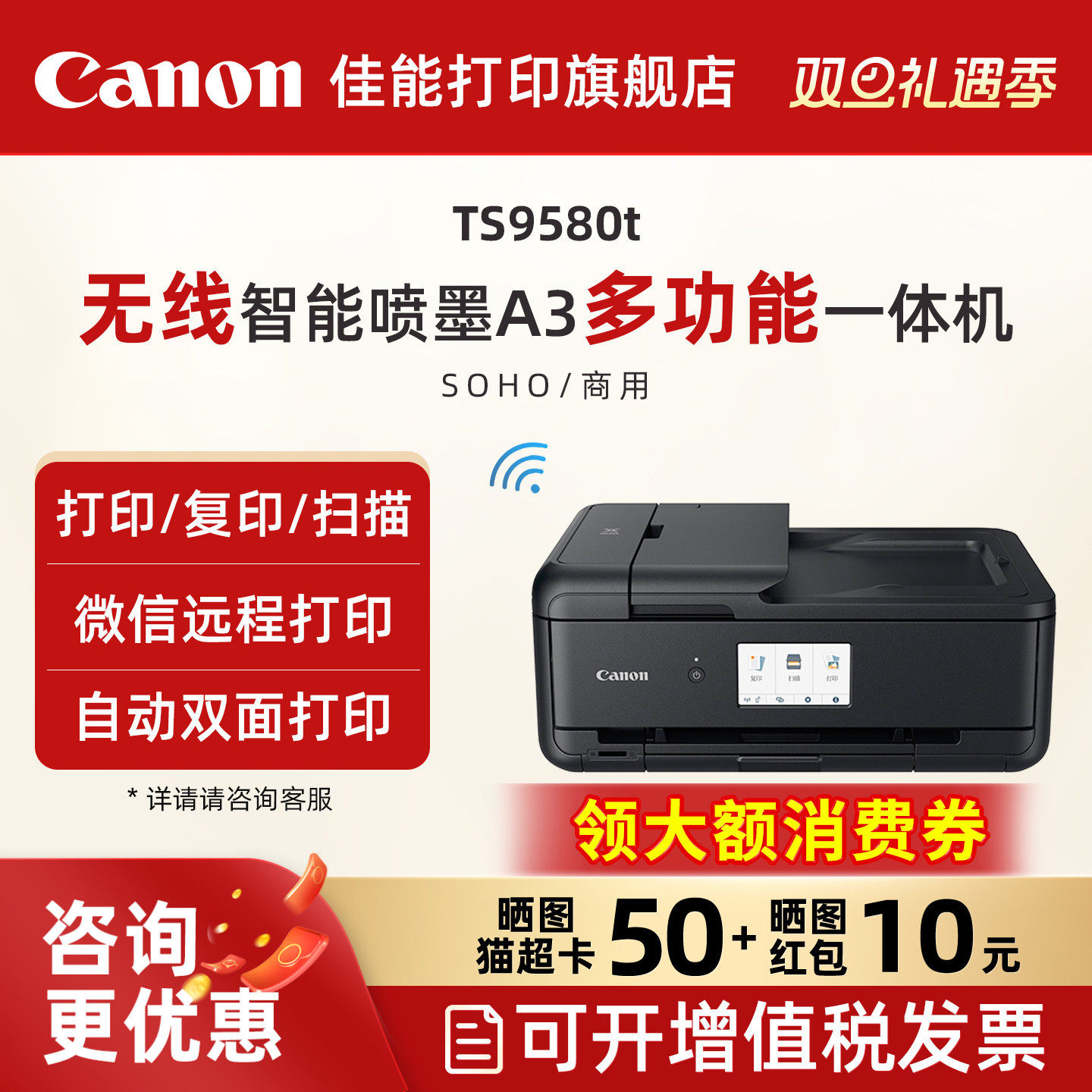 佳能旗舰店TS9580t A3打印机复印扫描一体机5色无线WiFi微信远程打印办公家用自动双面彩色照片手机