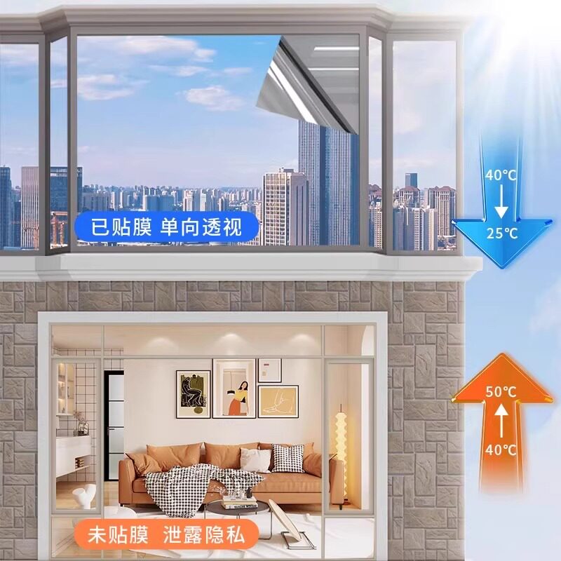 窗户防窥防晒隔热膜单向透视防窥膜玻璃贴纸阳台遮阳膜透光不透明