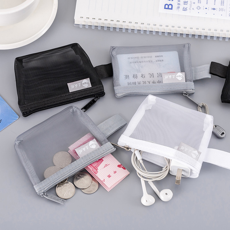 透明网纱收纳袋高颜值立体零钱包迷你分装包钥匙口红杂物证件卡片整理包内包中包便携玩具网格装耳机拉链袋