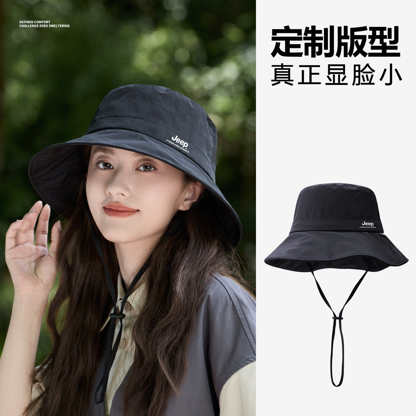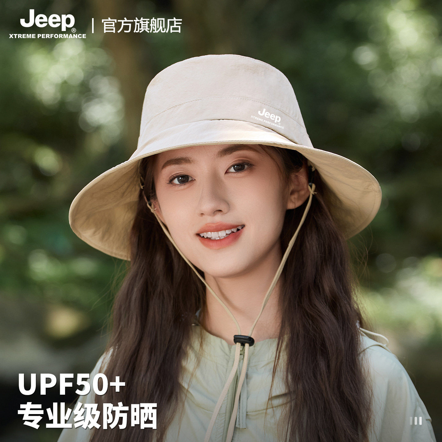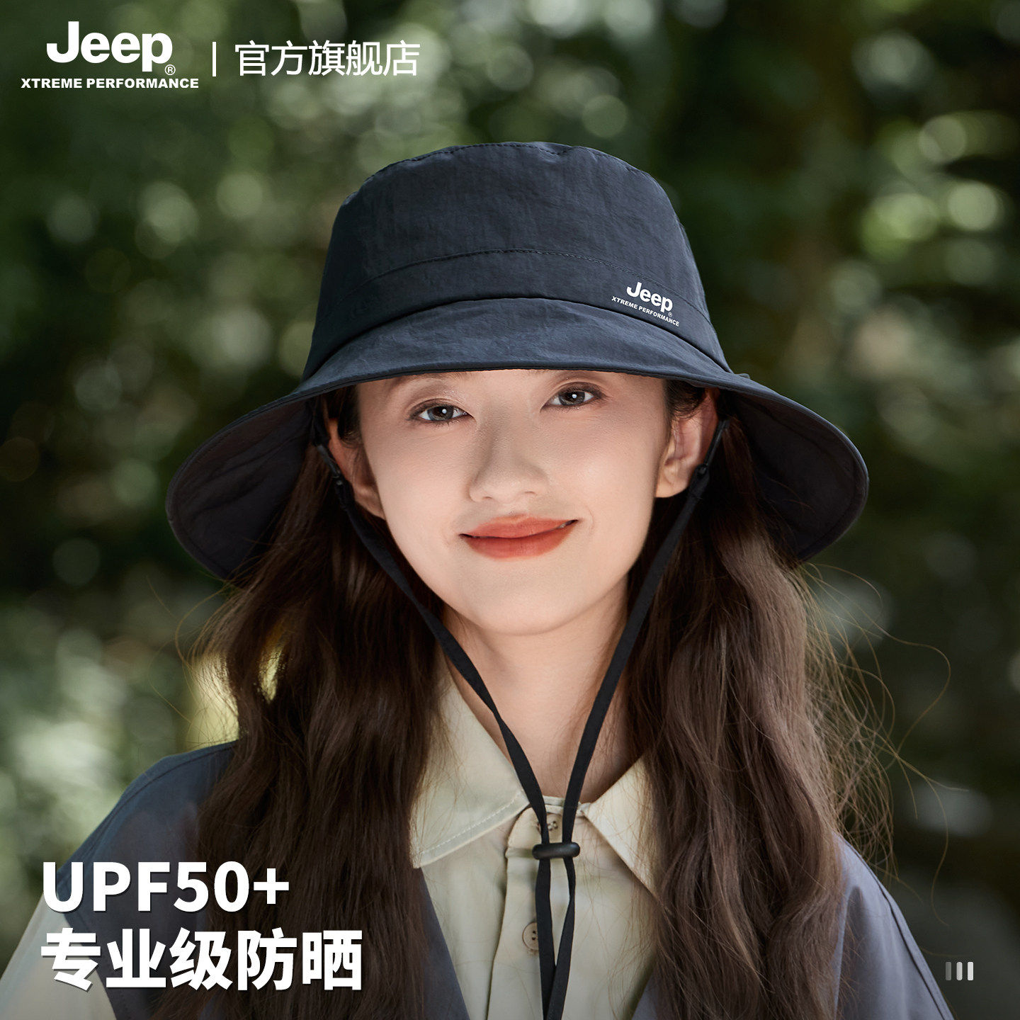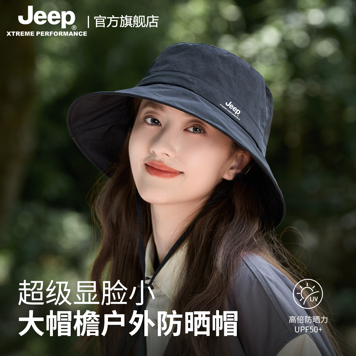 jeep吉普女士渔夫帽户外夏季骑行防紫外线大檐遮阳防晒太阳帽子女