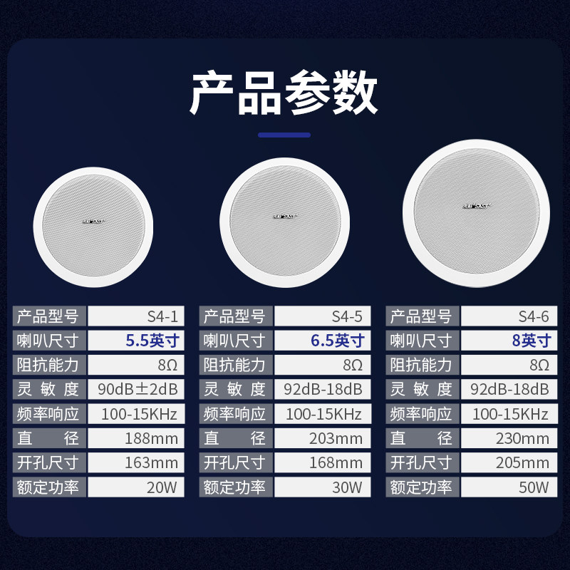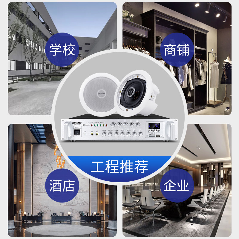 先科同轴吸顶喇叭套装家庭餐厅店铺背景音乐系统无线蓝牙天花吊顶音箱嵌入式3D环绕重低音吸顶音响店用广播