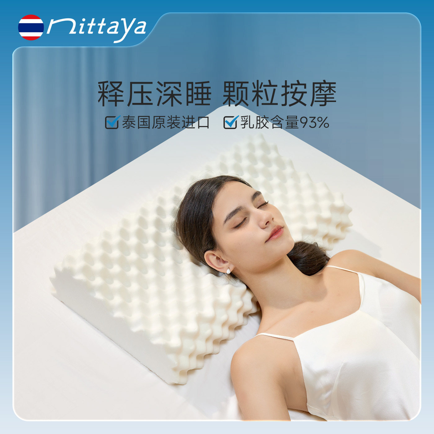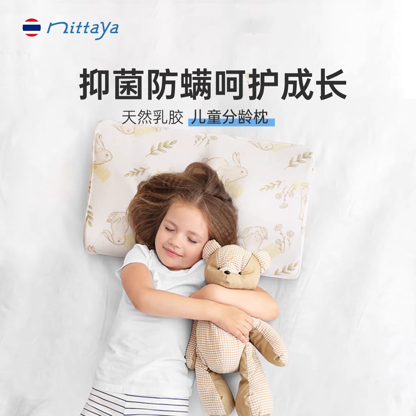 nittaya天然乳胶枕泰国进口0胶水软硬适中儿童枕头成人颈椎按摩枕