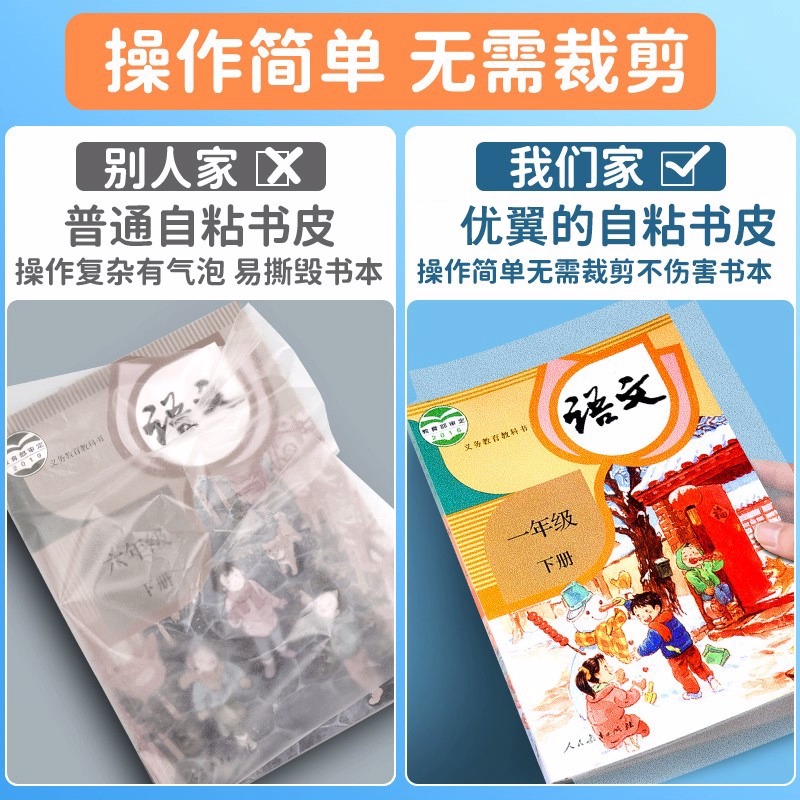 包书皮自粘透明磨砂书皮纸小学生专用一年级二三年上册中号16k课本2025新款书本封皮保护套书套书膜全套贴纸