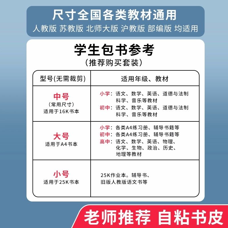 包书皮自粘透明磨砂书皮纸小学生专用一年级二三年级下册中号16k课本2026新款书本保护套书套包书膜全套贴纸