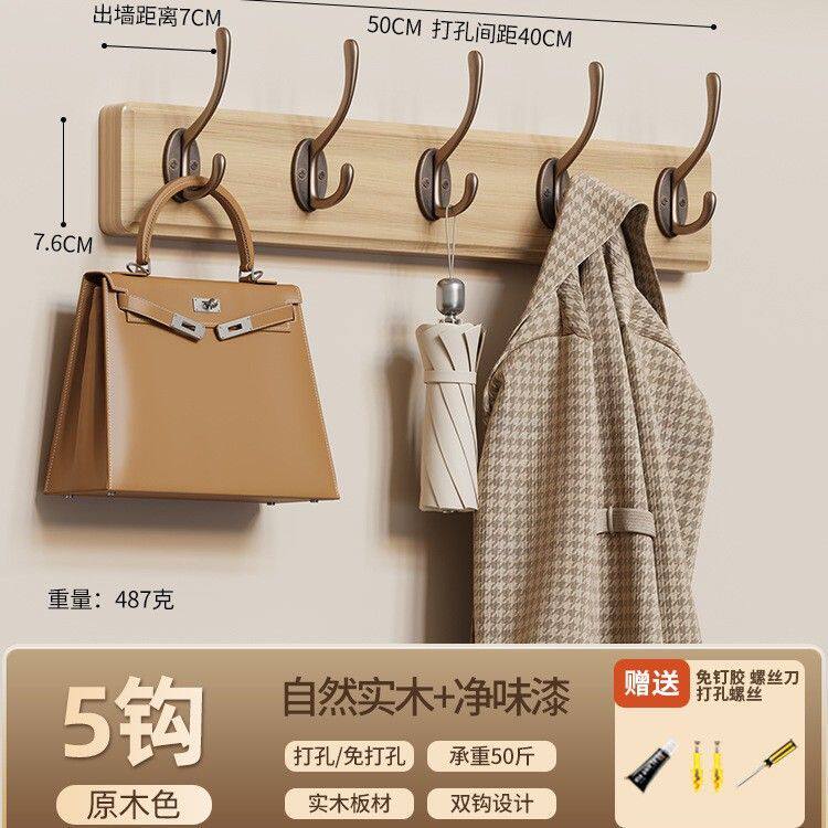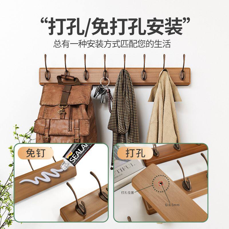 挂衣架墙上壁挂衣服挂钩进门玄关入户挂衣钩门后口免打孔钥匙实木