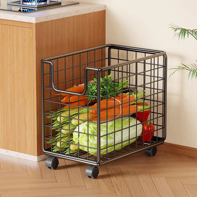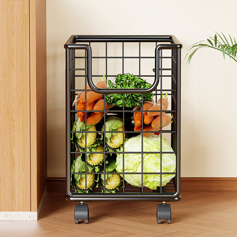 厨房置物架落地蔬菜收纳筐可移动小推车带轮可折叠储物筐子果蔬