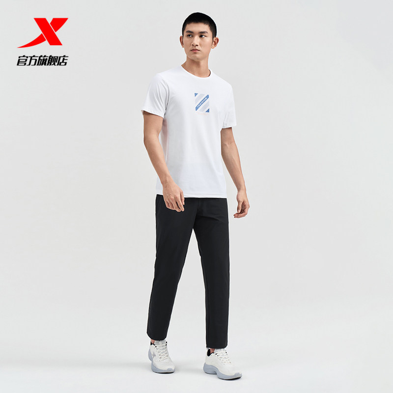 特步速干T男夏季宽松短袖冰丝户外跑步T恤透气上衣男士健身运动服