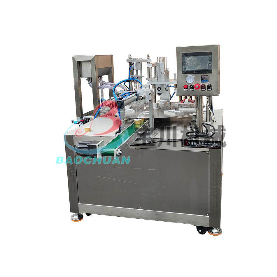 全自动转盘式酱料封杯机 鱼子酱发膜封口机 膏体发膜灌装封口机