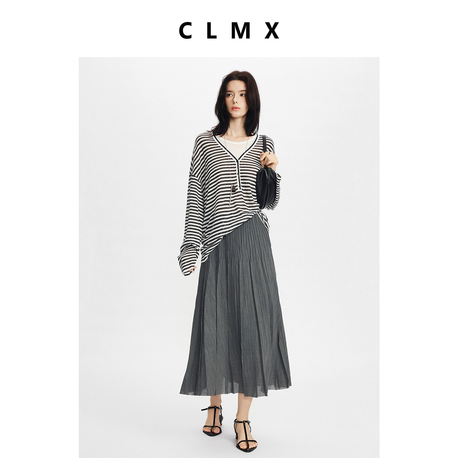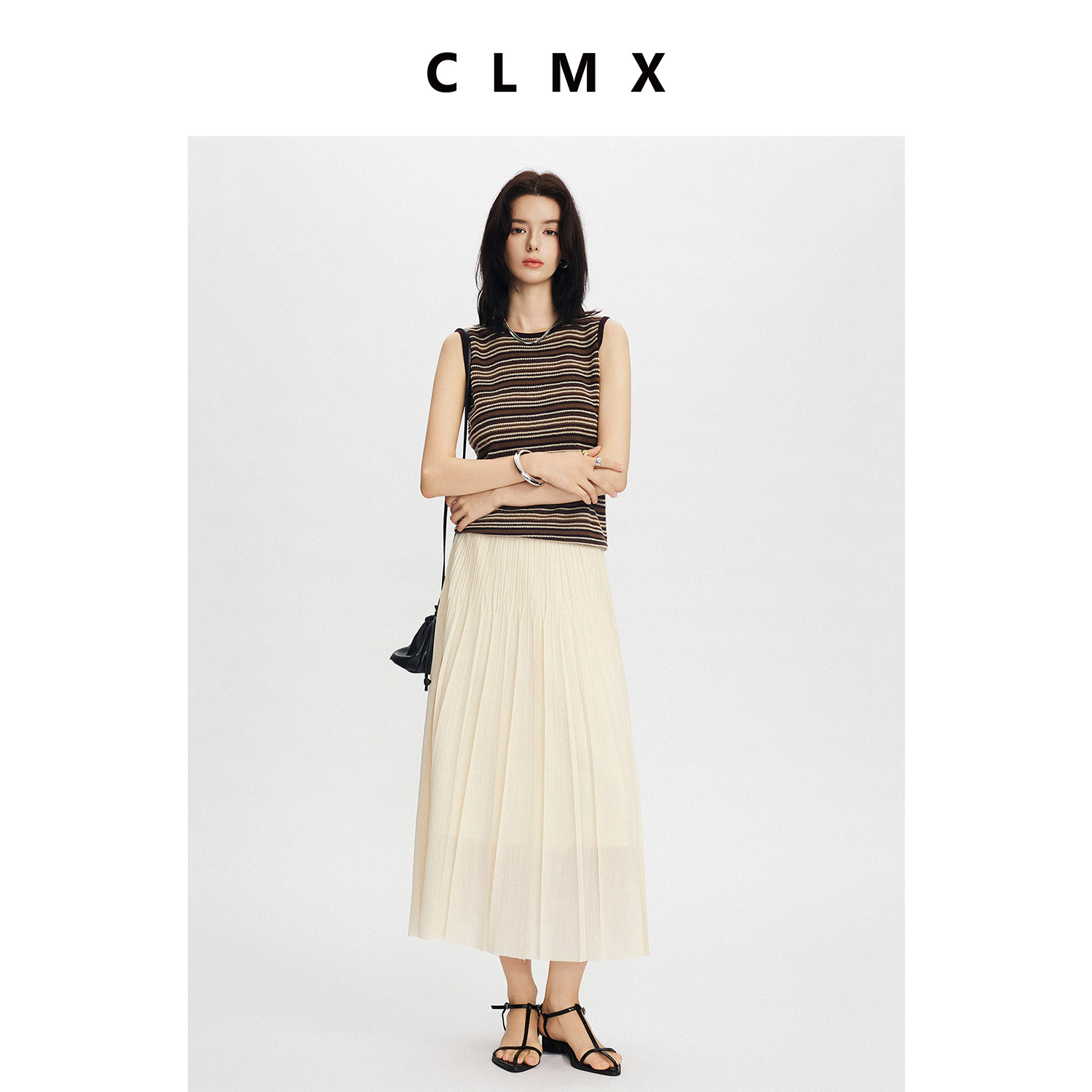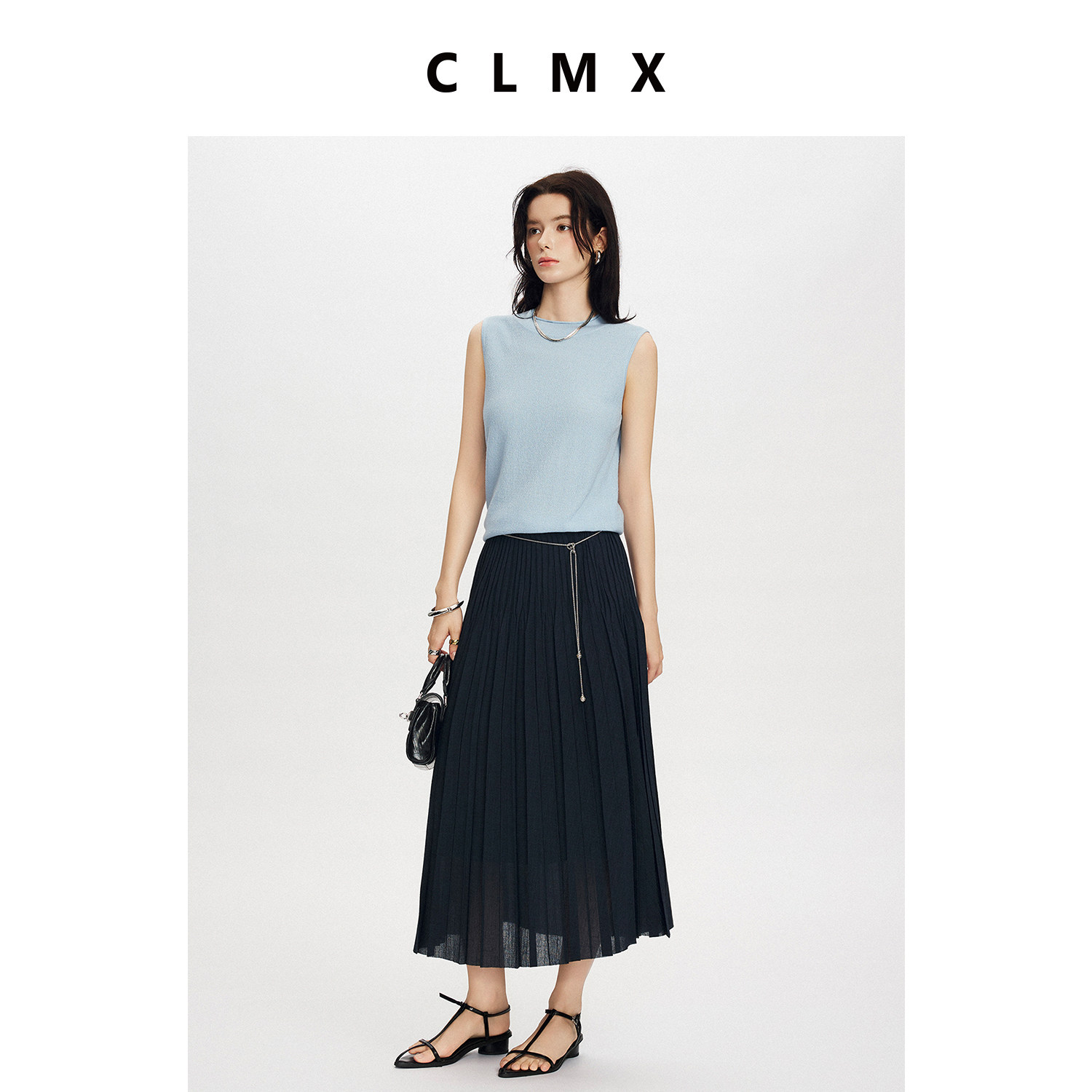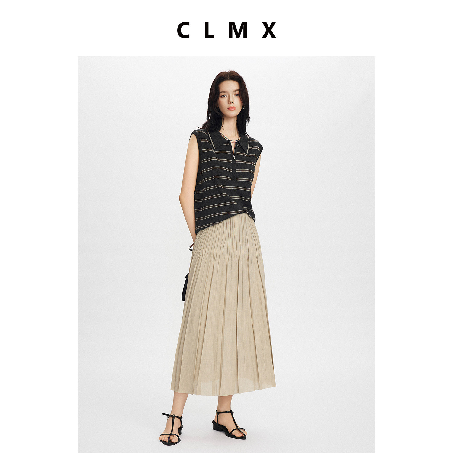 CLMX简约微弹裙子亚麻风格干爽乱麻肌理面料褶皱半身裙