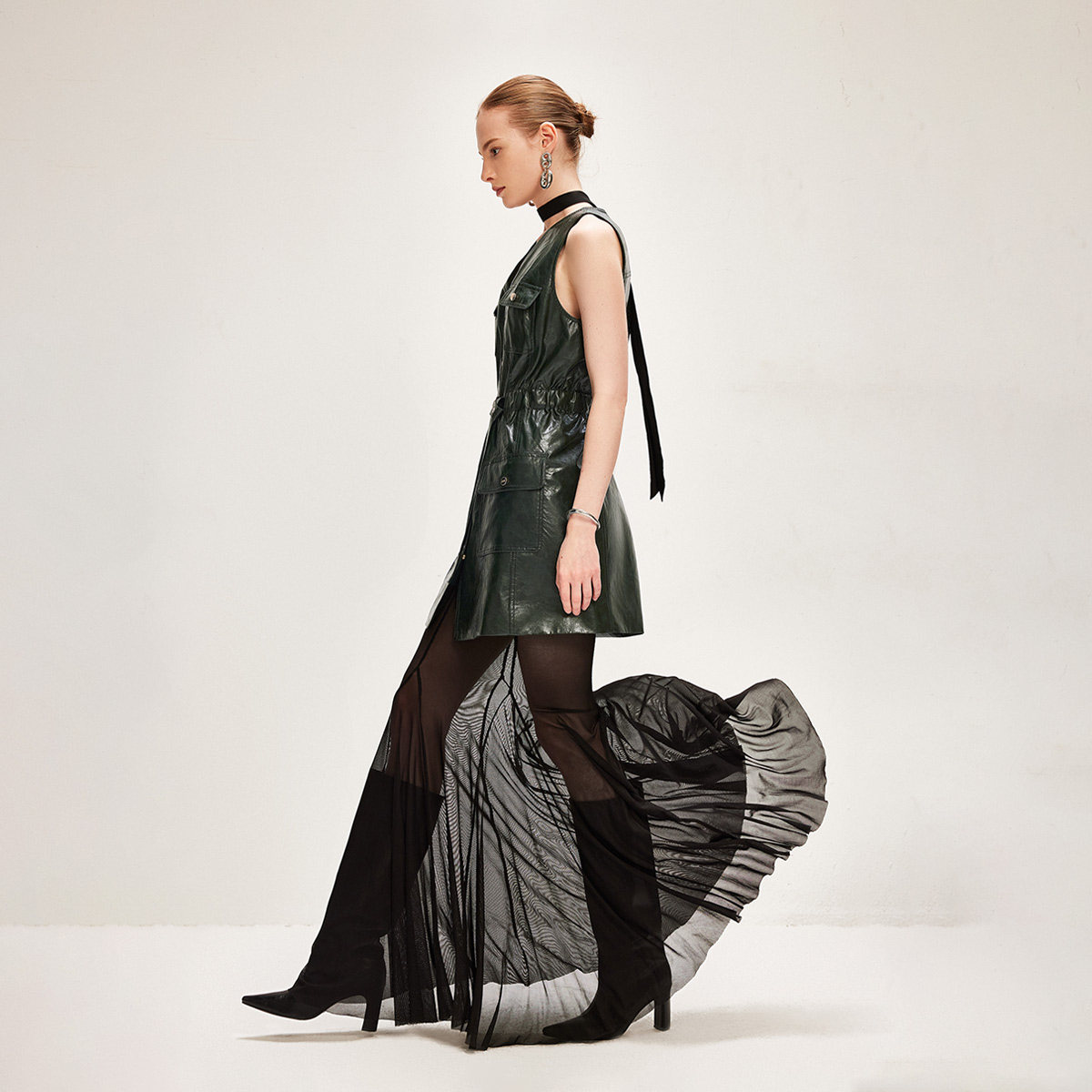 摩登v领马甲裙,金属按扣方便穿脱