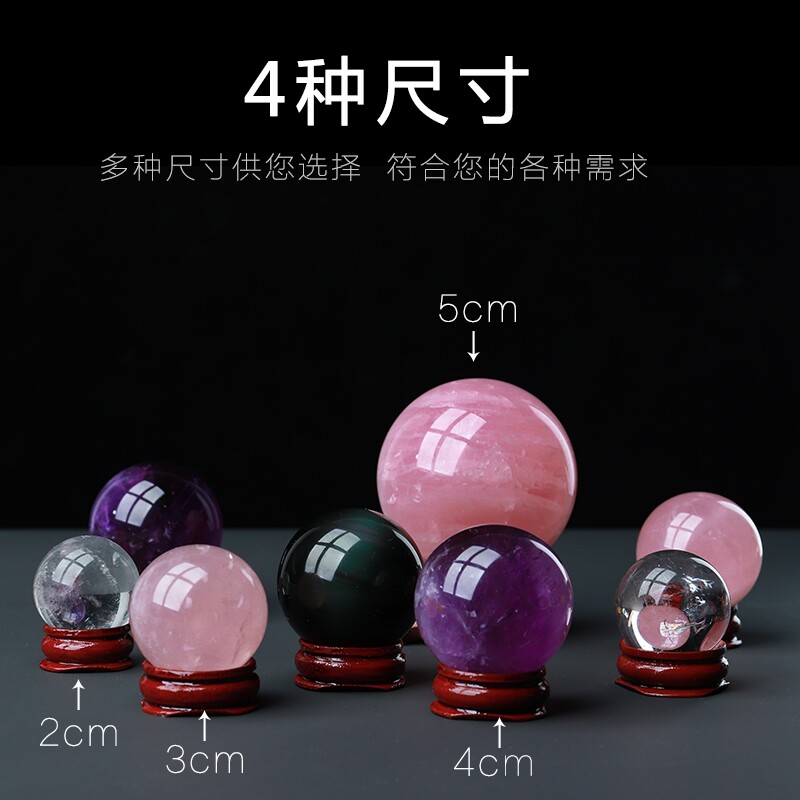 办公桌面装饰品摆件水晶球紫水晶球黑曜石家居客厅天然白水晶球粉