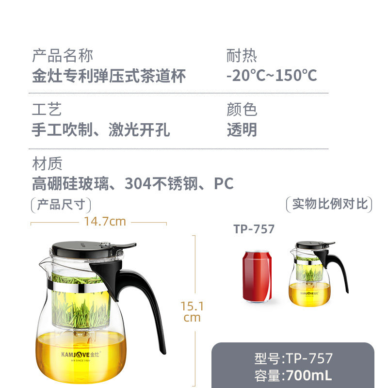 金灶TP-757飘逸杯耐热玻璃茶具套装家用一键茶水分离泡茶壶花茶壶