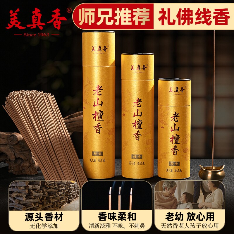 美真香老山檀香沉香线香天然熏香家用室内礼佛供香财神香拜神观音