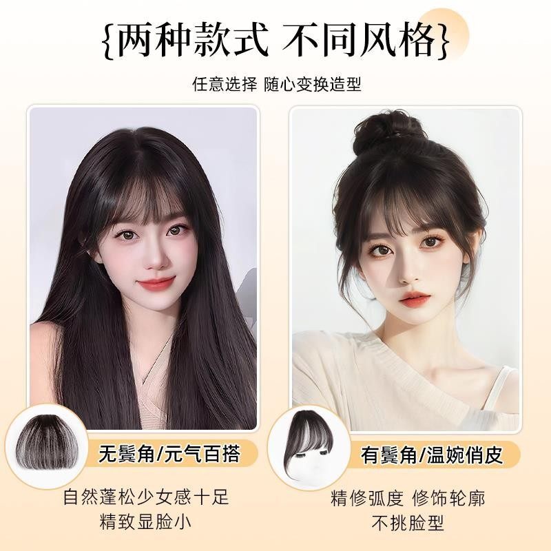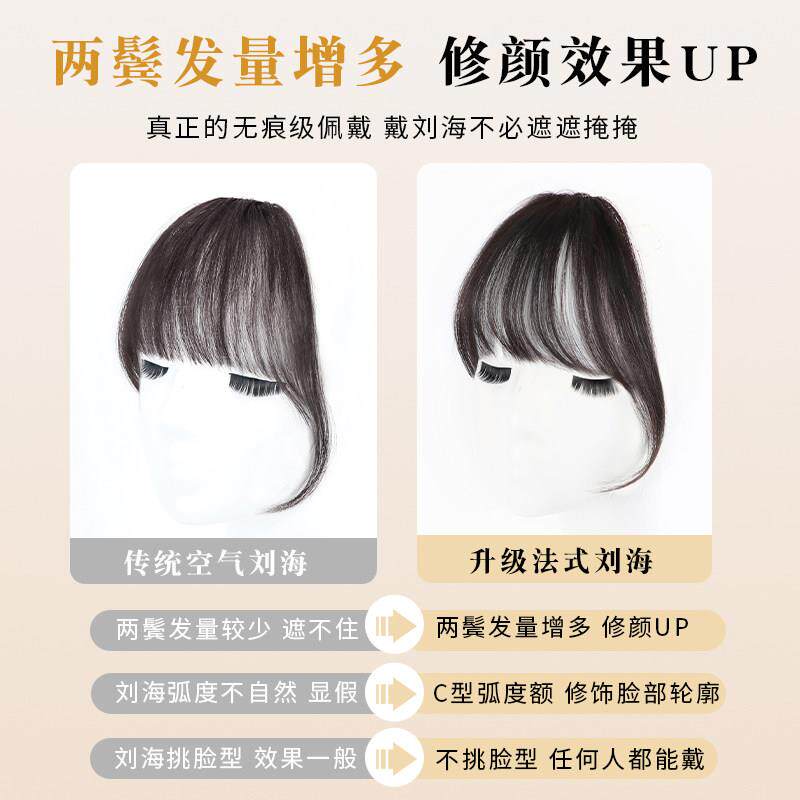全真发空气刘海假发女片头顶自然隐形前额法式齐轻薄款丝鬓角发型