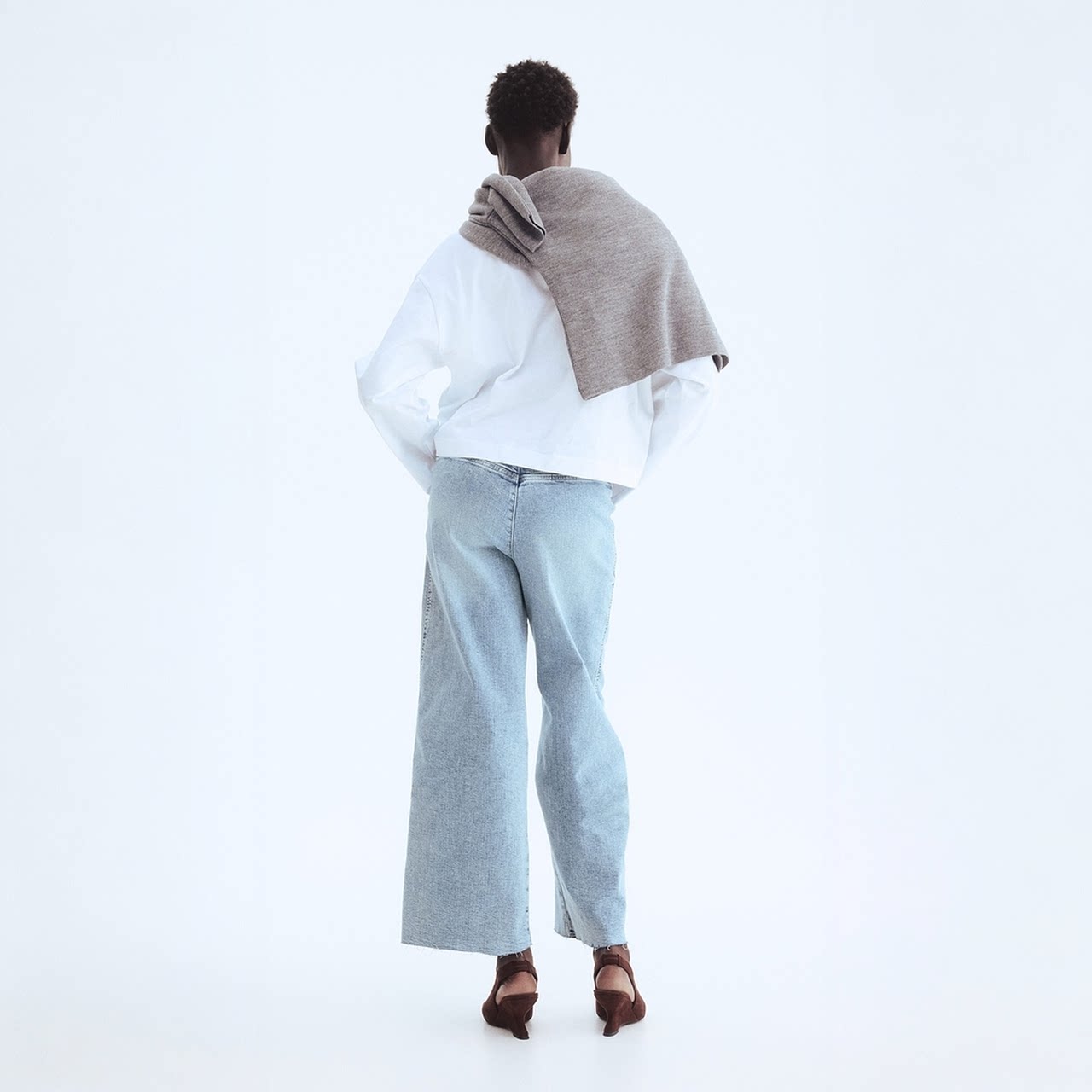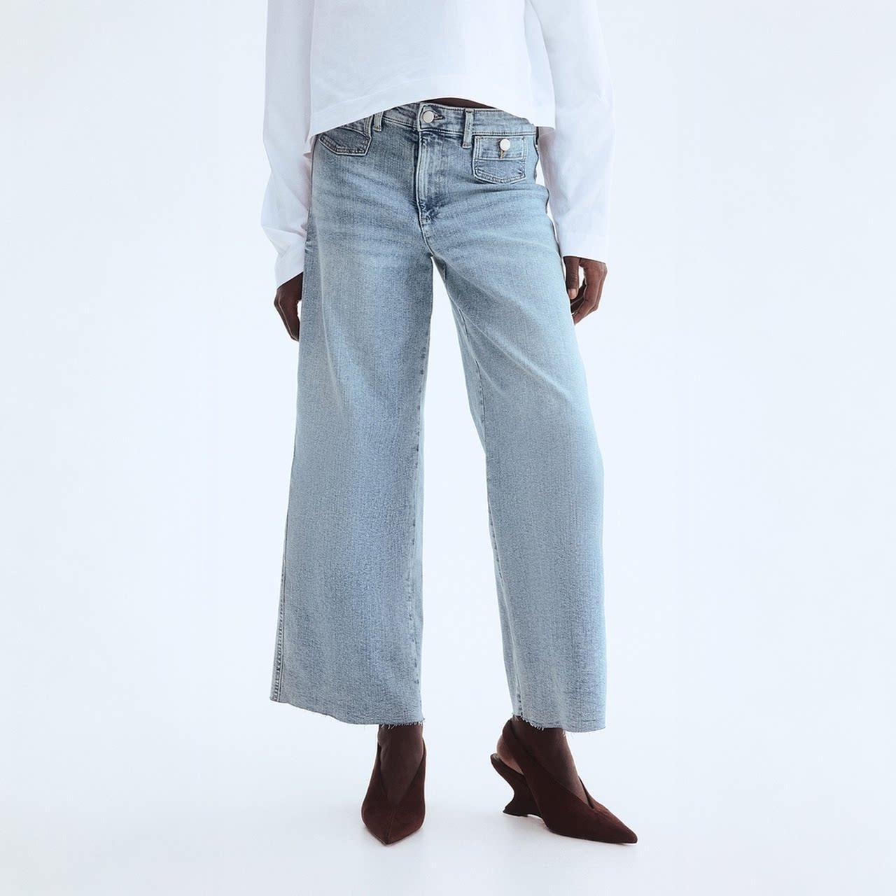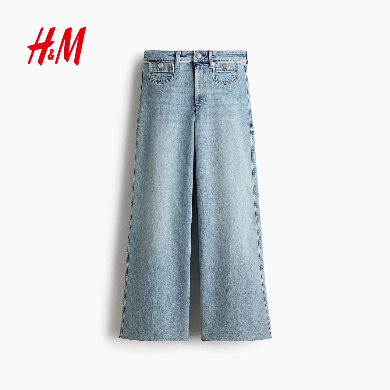 HM女装牛仔裤2026春季新款阔腿版型高腰及踝潮流牛仔裤1324699