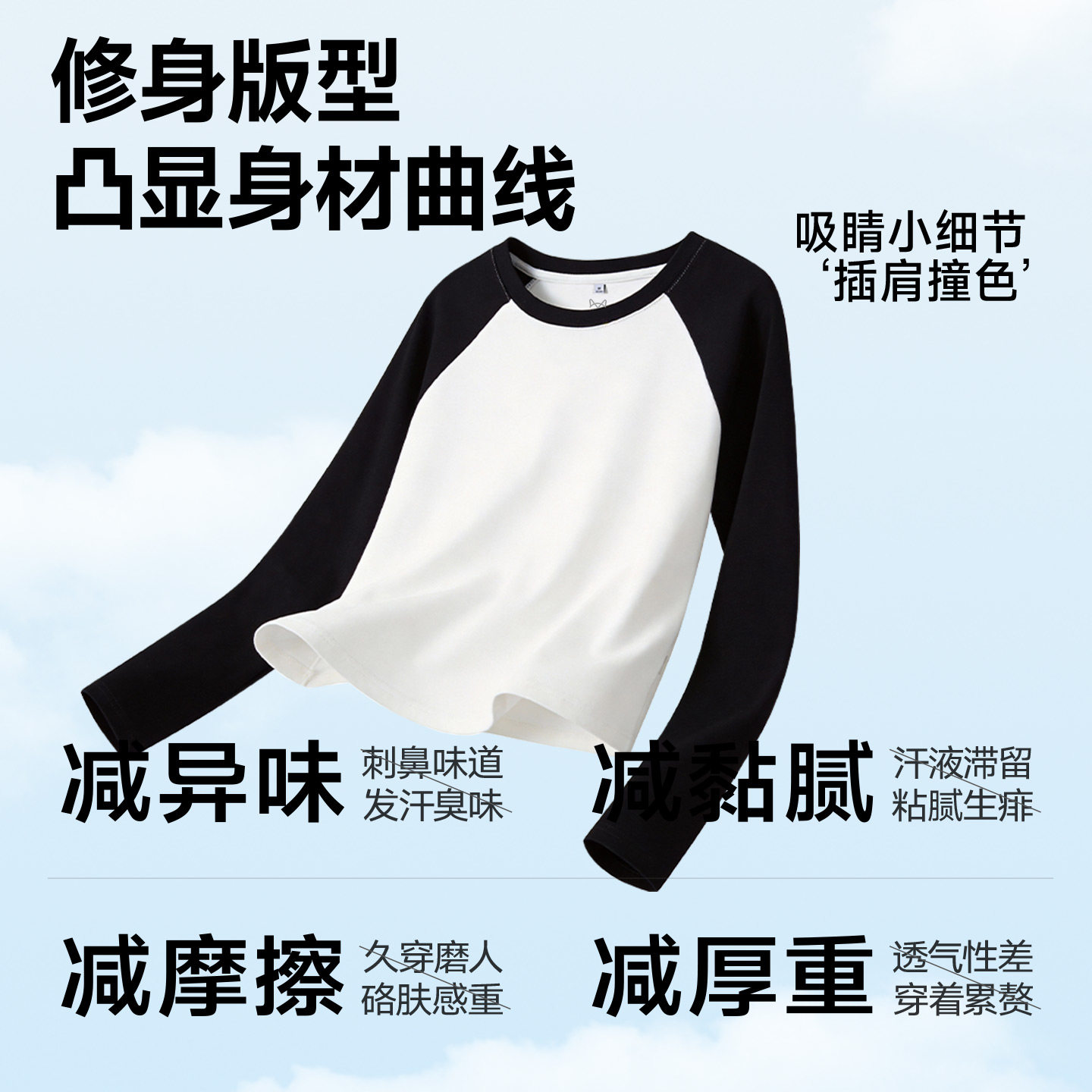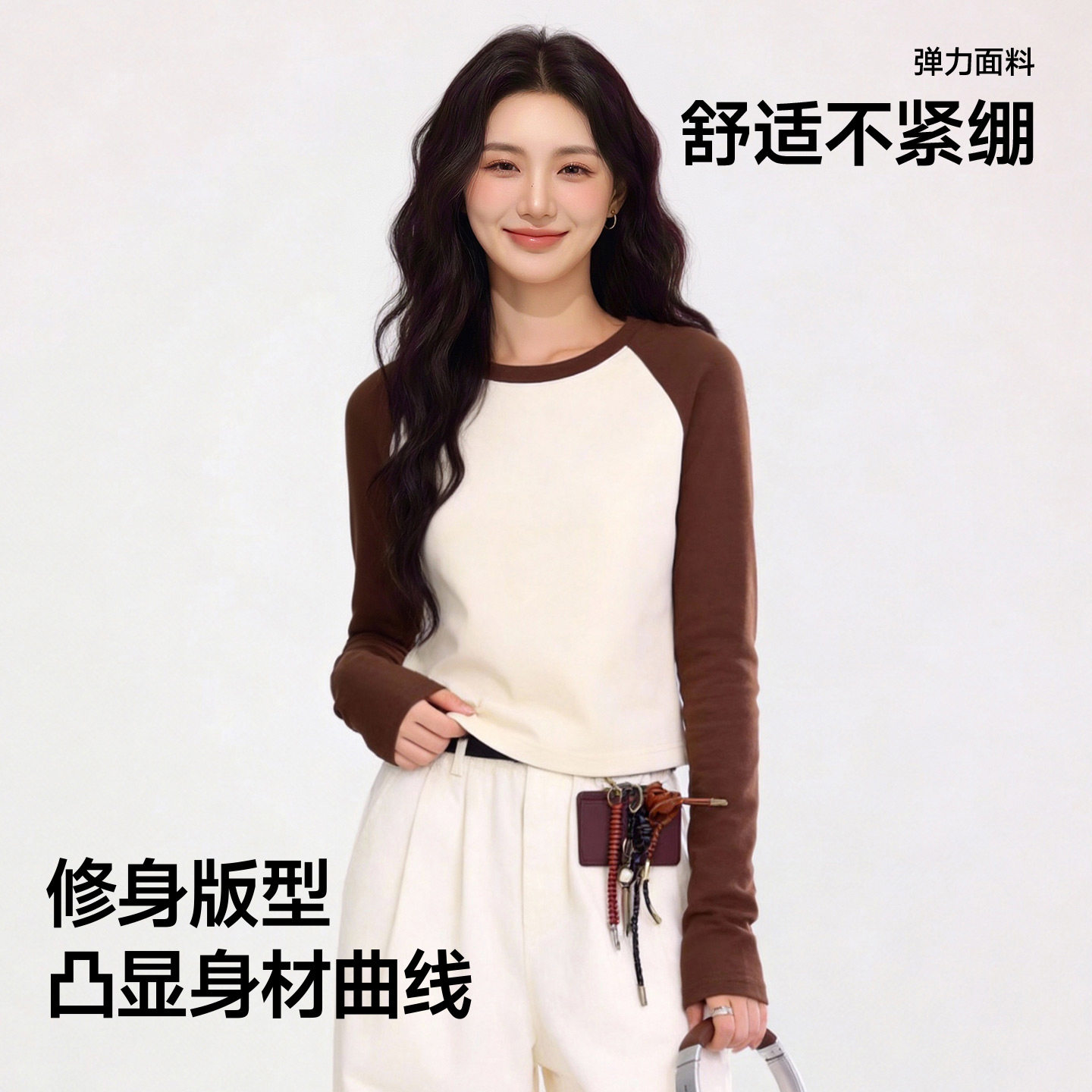 猫人长袖t恤女装棉弹短款打底衫撞色潮流显瘦设计感上衣服春新款Z