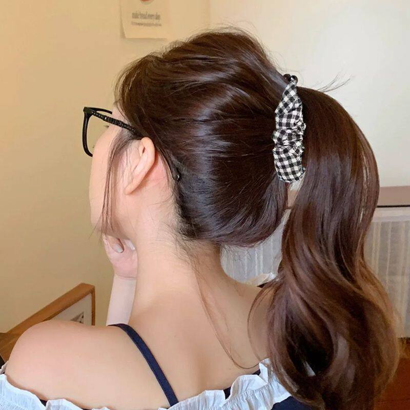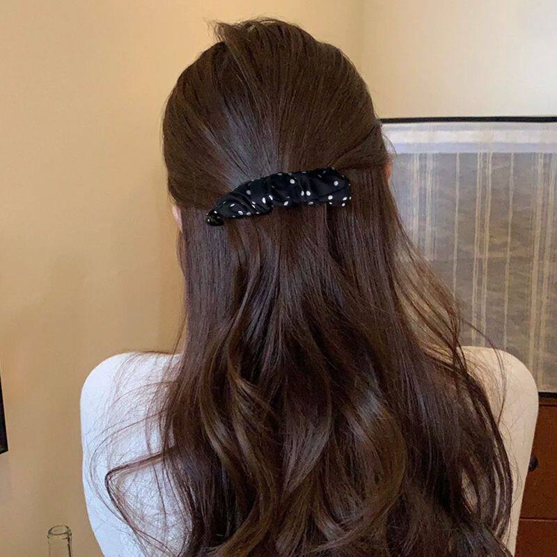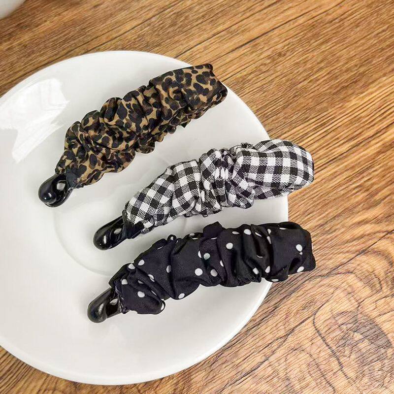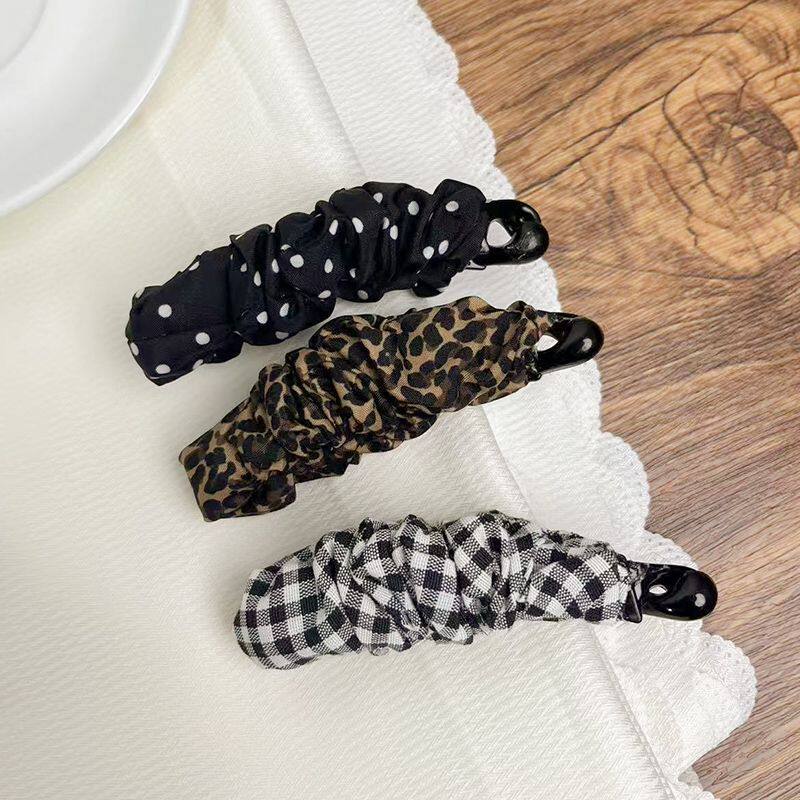 复古豹纹波点褶皱香蕉夹高级感马尾扭扭竖夹后脑勺显发量横夹发卡