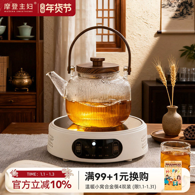 摩登主妇玻璃煮茶壶水杯烧水壶家用杯子茶具茶杯电陶炉养生壶套装