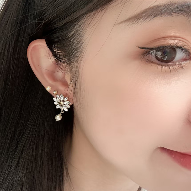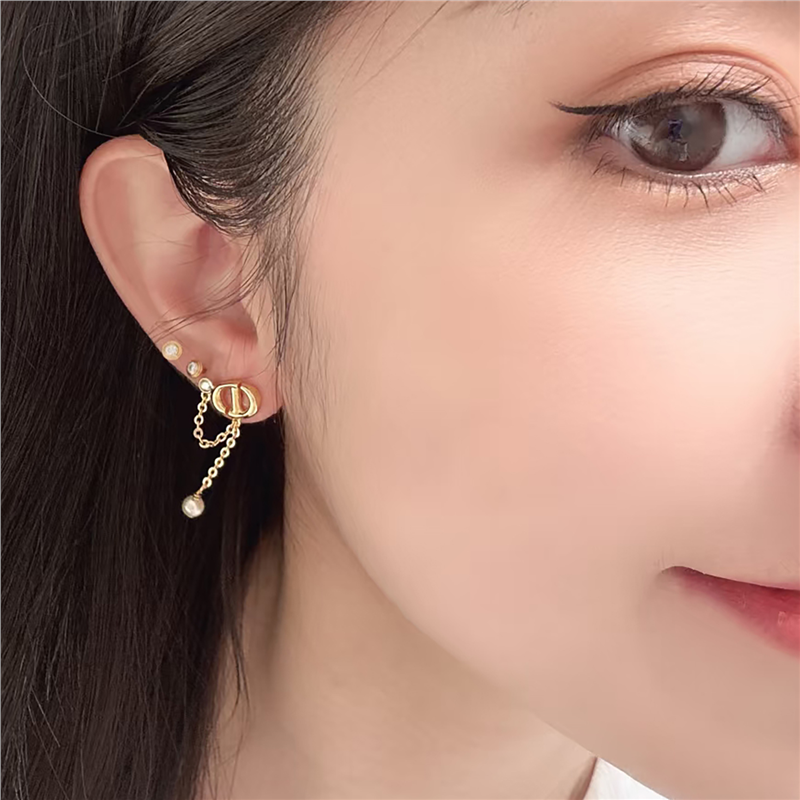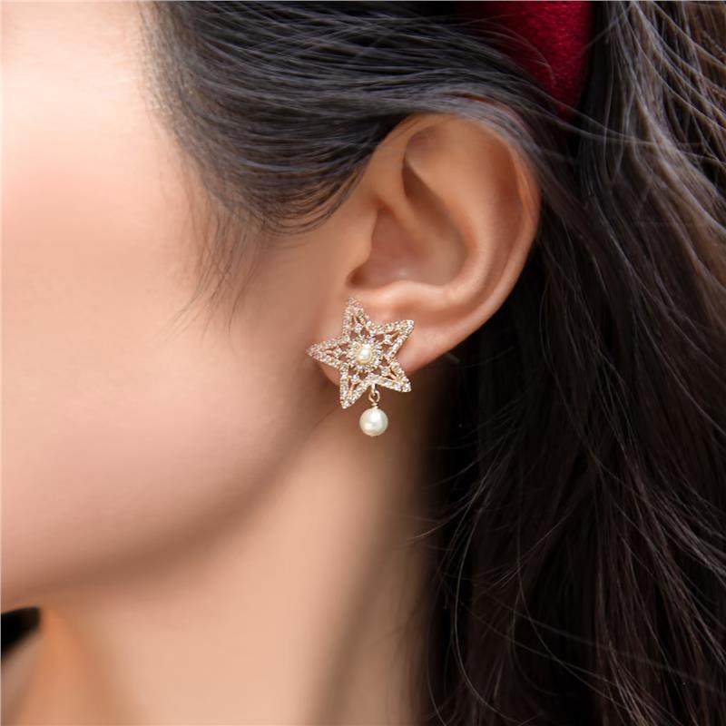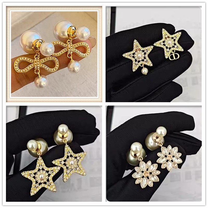 高定D家圣诞新款五角星珍珠耳环女CD款吊坠雪花耳钉耳饰品月亮