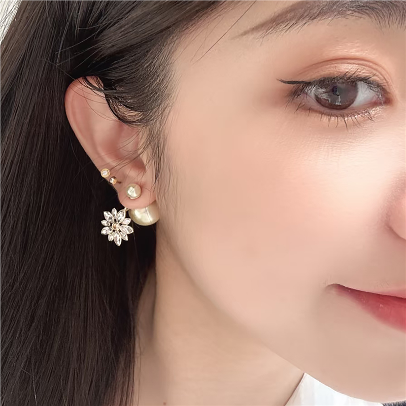 太阳花珍珠耳钉女2025新款爆款轻奢小众耳环高级感无耳洞耳夹耳饰