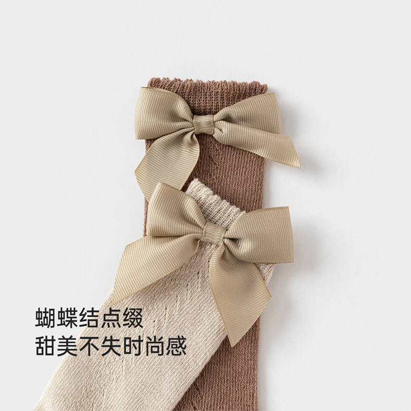 babylove婴儿长筒袜春秋女童过膝袜女宝宝甜美可爱蝴蝶结高筒袜子