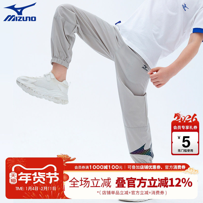 Mizuno美津浓KIDS男儿童春秋季薄款速干防蚊裤中大童运动长裤2025
