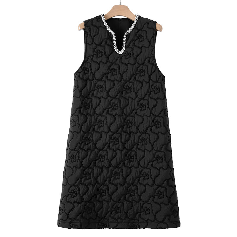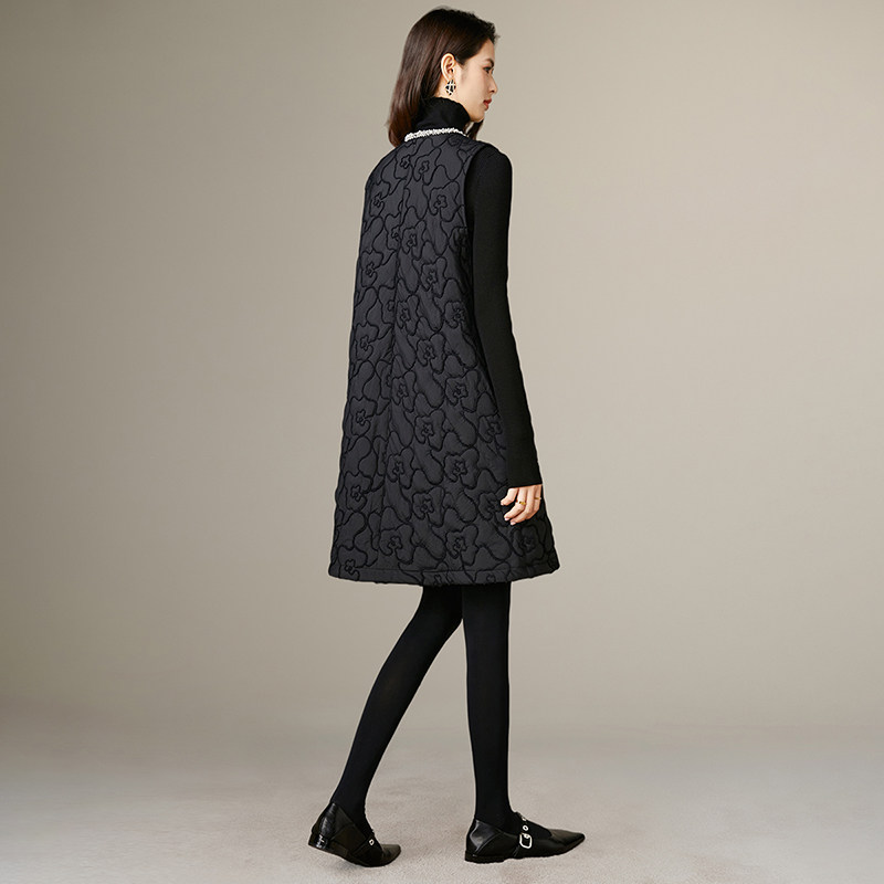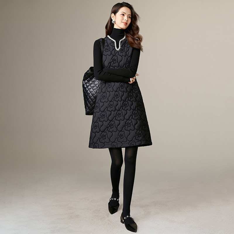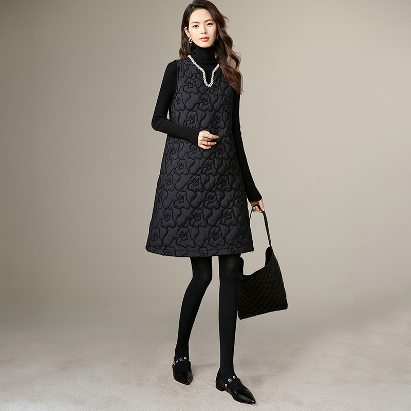 晚白2025年冬新款时尚简约连衣裙肌理加厚印花复古夹棉背心裙