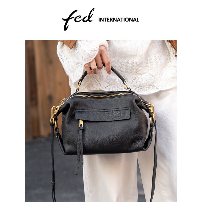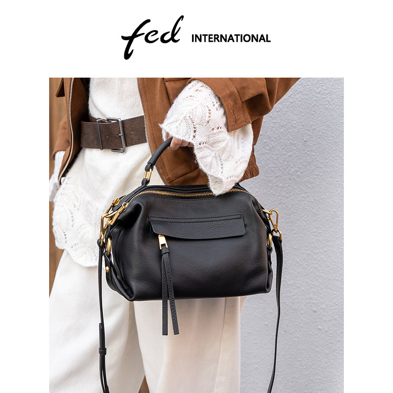 fed头层牛皮真皮女包枕头包波士顿包斜挎包单肩包大容量BFA9449