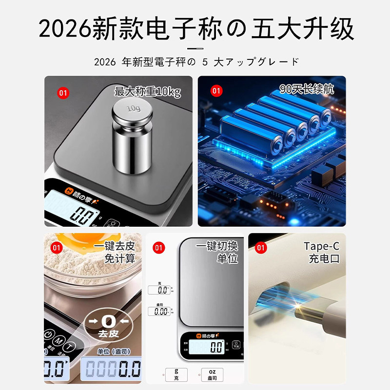 德国厨房电子秤称克2026新款精准小型高精度烘培家用商用食物克重