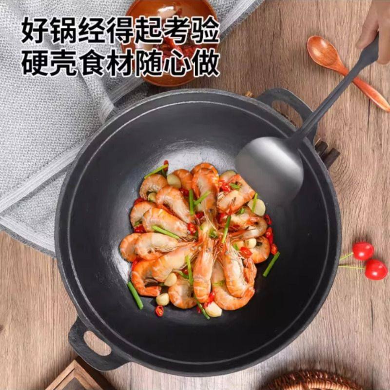 双耳炖锅老式农村圆底大铁锅家用加厚生铁铸铁锅不粘炒锅炒菜传统
