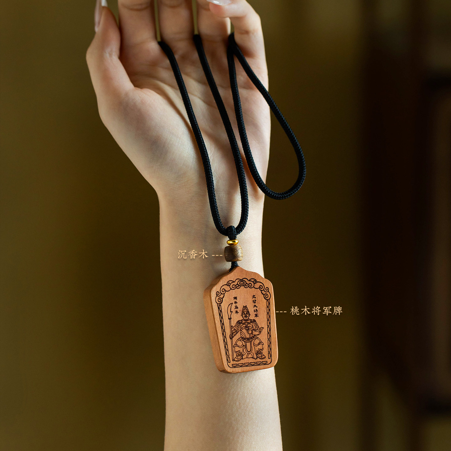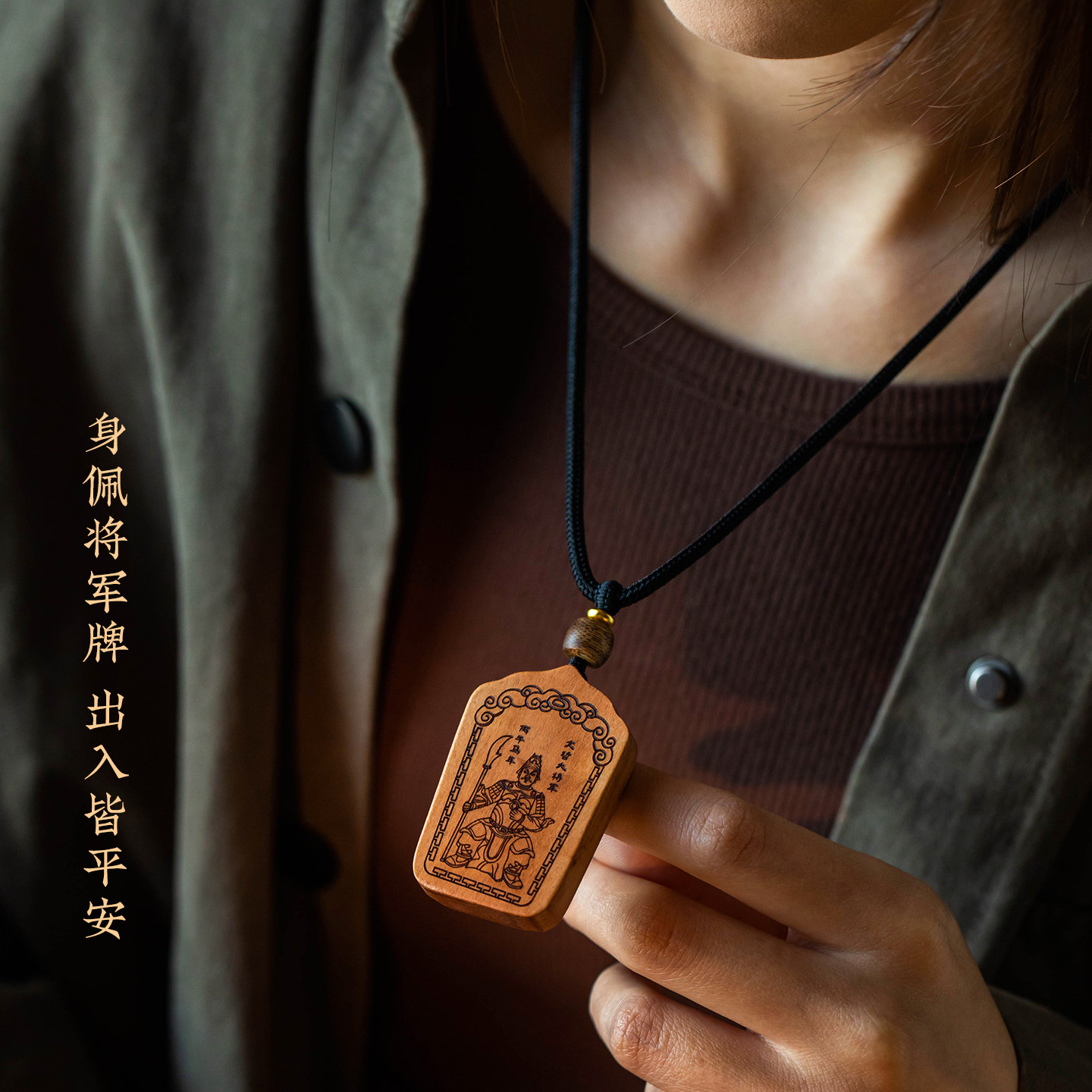 大善堂天然桃木吊坠马年将军牌项链毛衣链男女本命年平安护身礼物
