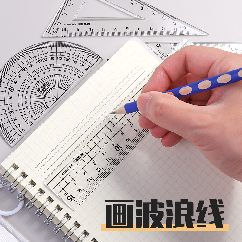 晨光套尺四件套亚克力学生铝合金套尺女ins风简约日韩可爱三角板小学生三角套尺一套绘图制图考试专用涂卡尺