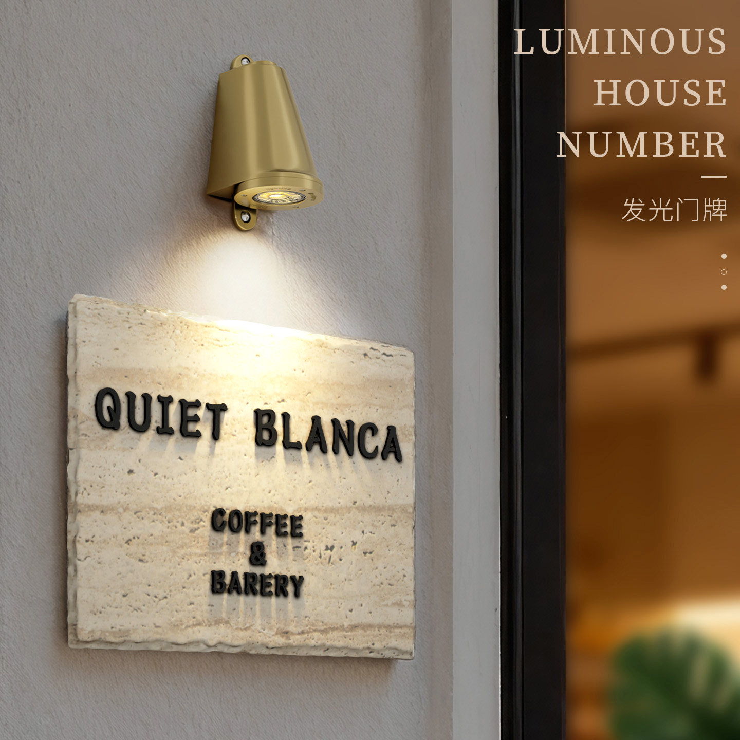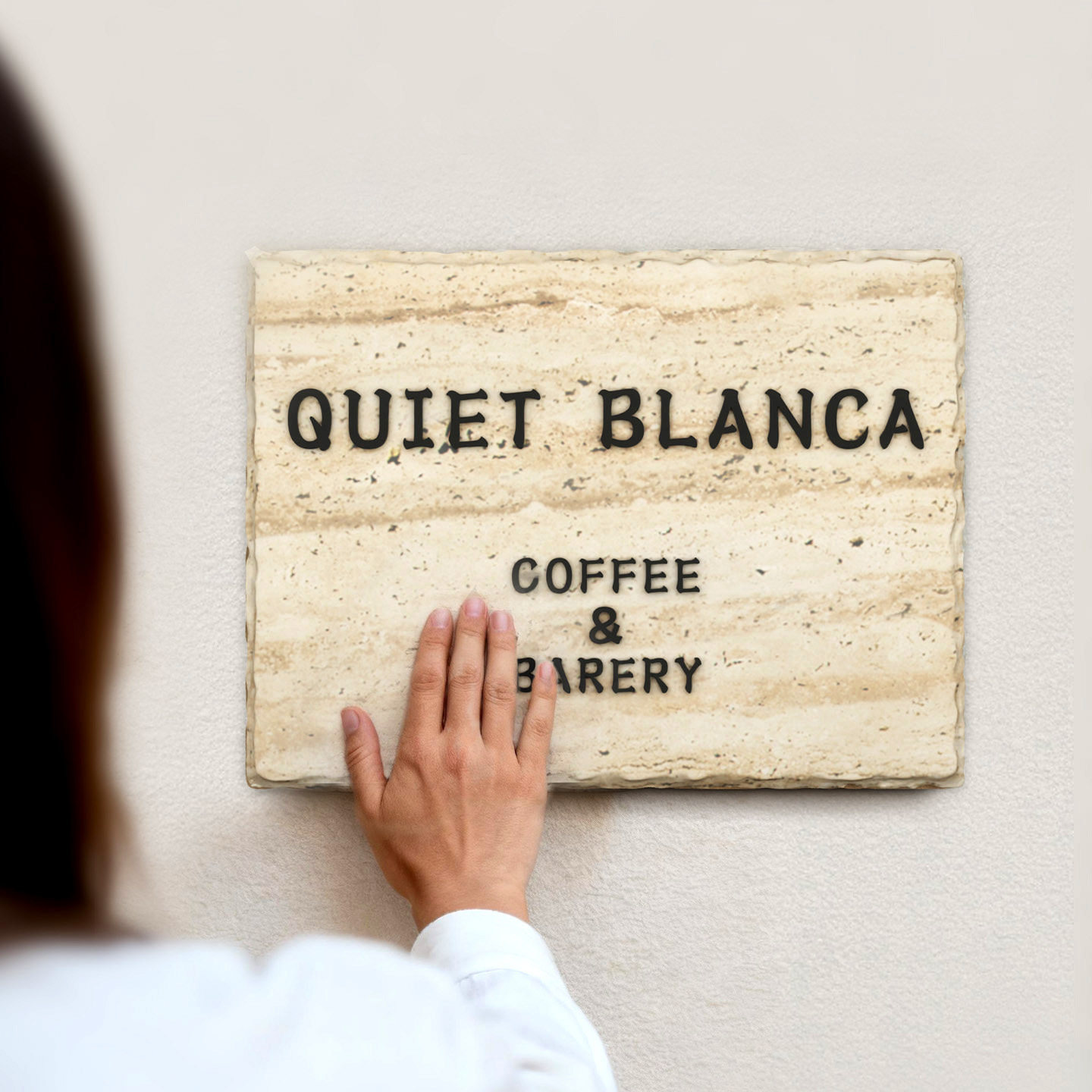 中古侘寂风店铺店招门牌定制自然松弛感广告牌装修设计公司牌匾美容院服装店门口墙面LOGO牌天然洞石大理石